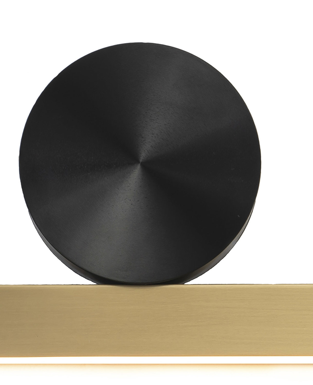 Listwa w kolorze szczotkowanego mosiądzu zwieńczona jest symetrycznie umieszczonym dekoracyjnym kołem o średnicy 10 cm.