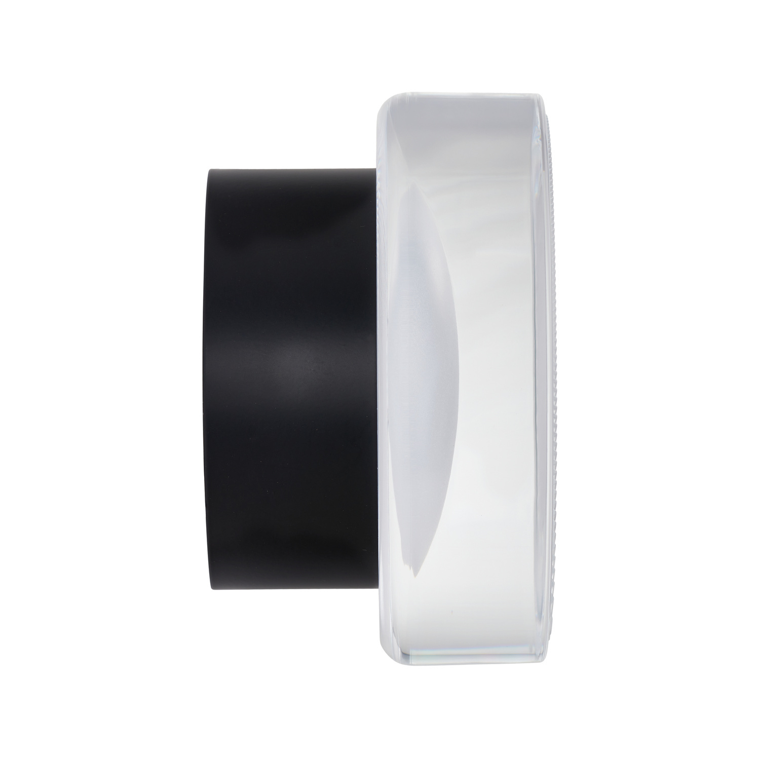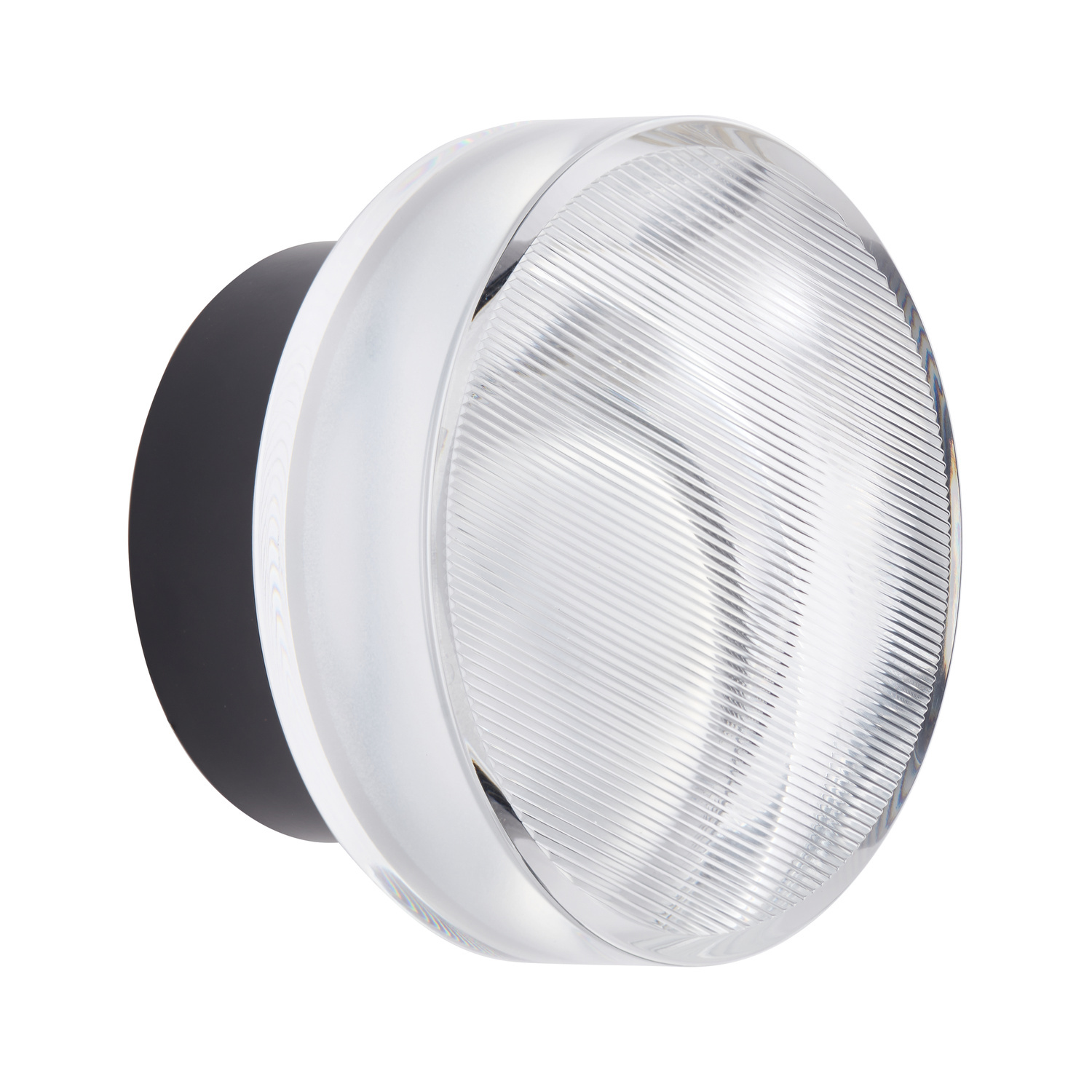 • Stylowy kinkiet ścienny z transparentnego, fakturowanego akrylu i czarnego wykończenia w metalu - idealne oświetlenie akcentowe eleganckich wnętrz. Niewielki plafon sufitowy.