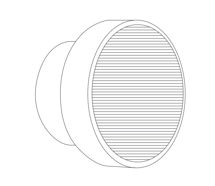 Okrągły klosz wykonany jest z przezroczystego akrylu o unikalnej, fakturowanej powierzchni.