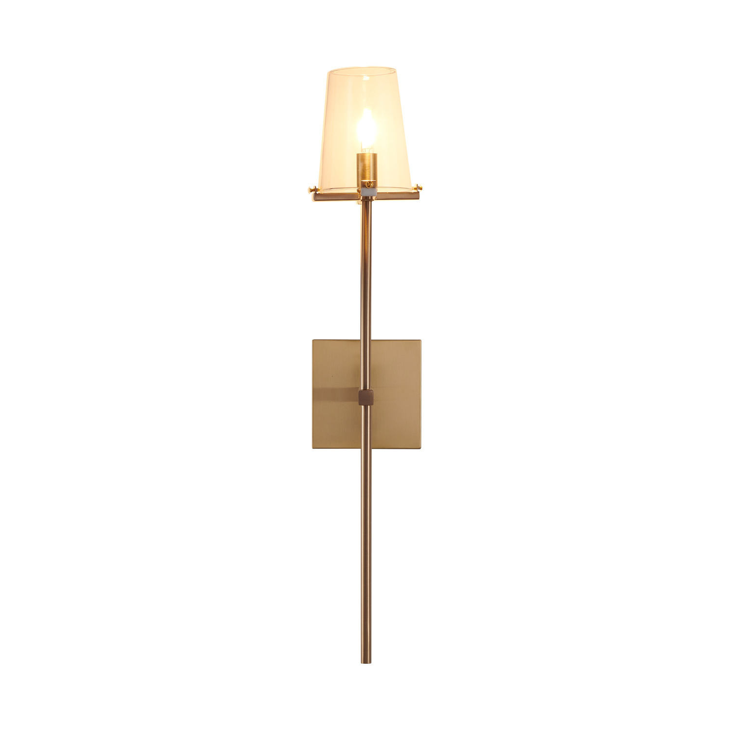 Kinkiet posiada prosty, cylindryczny szklany klosz, który daje miękkie, rozproszone światło.