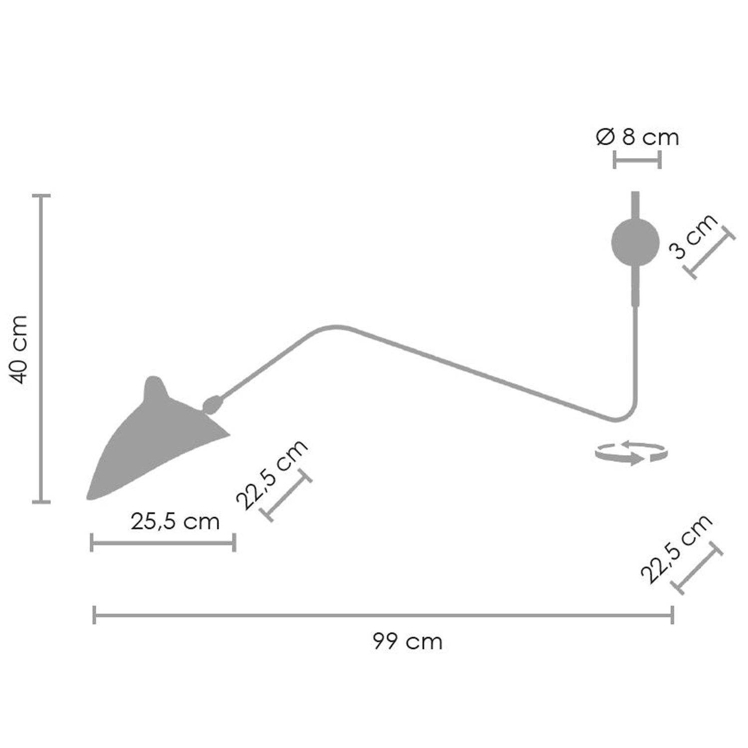 Ramię jest regulowane w lewą i prawą stronę.