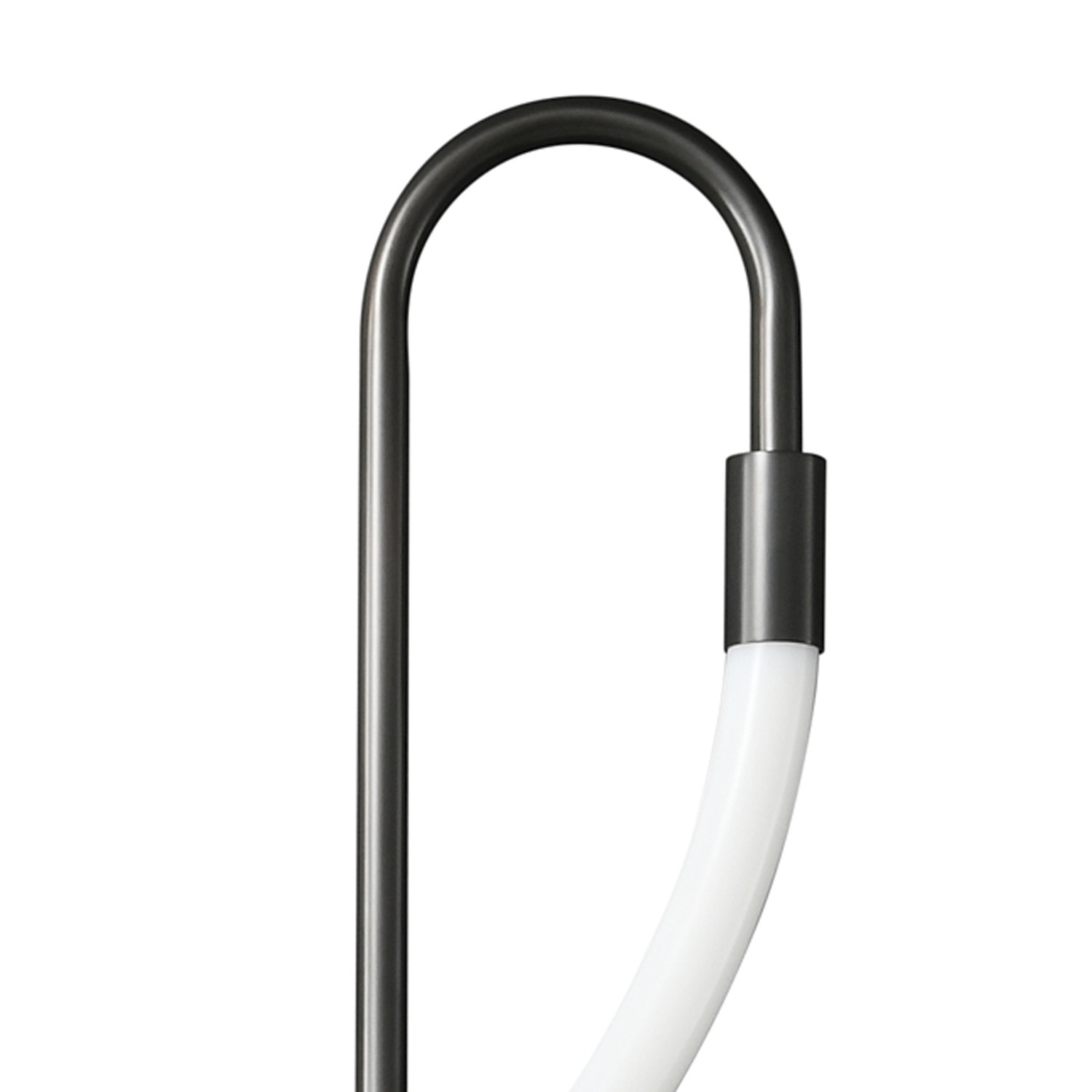 Jej minimalistyczny design i połączenie matowego metalu z białym neonem sprawia, że będzie pasować zarówno do wnętrz minimalistycznych, jak i tych bardziej wyrazistych.