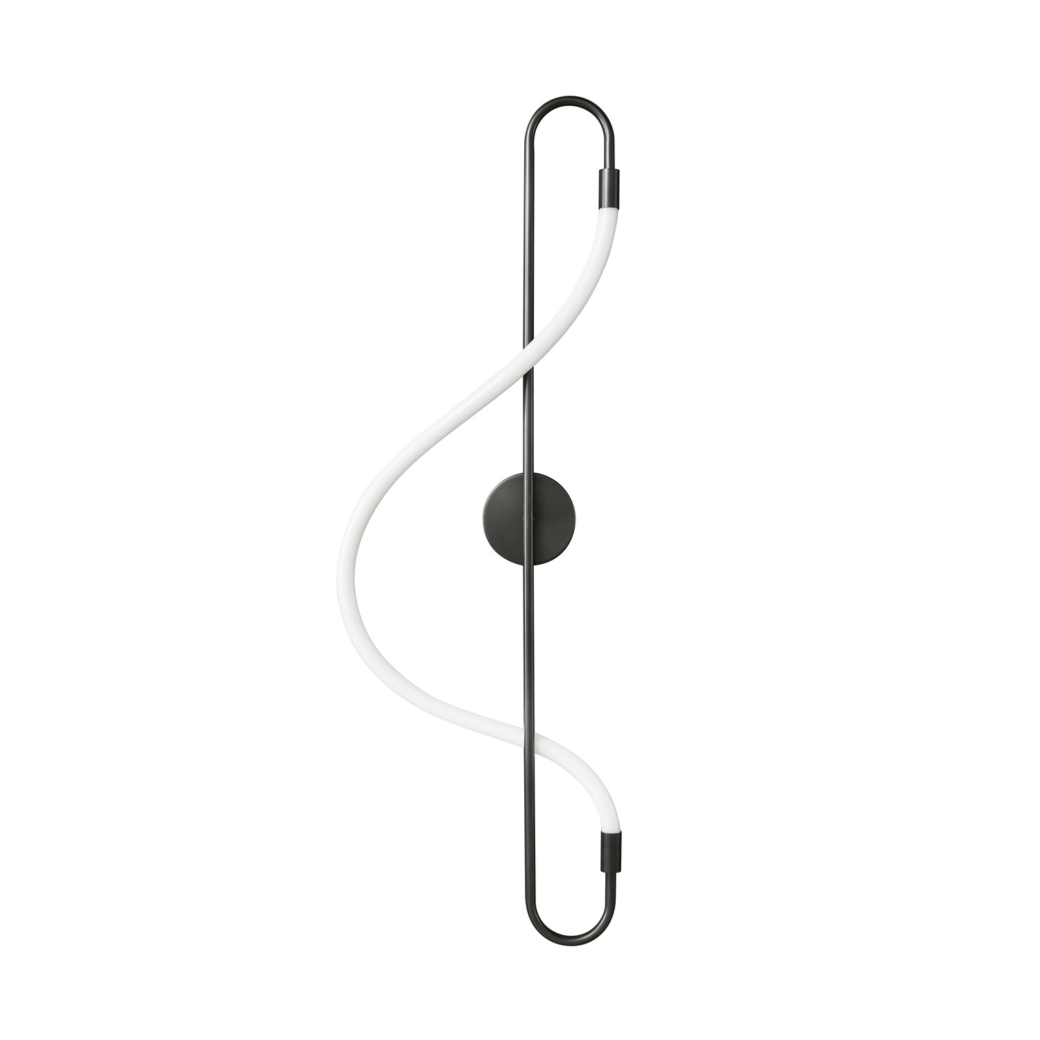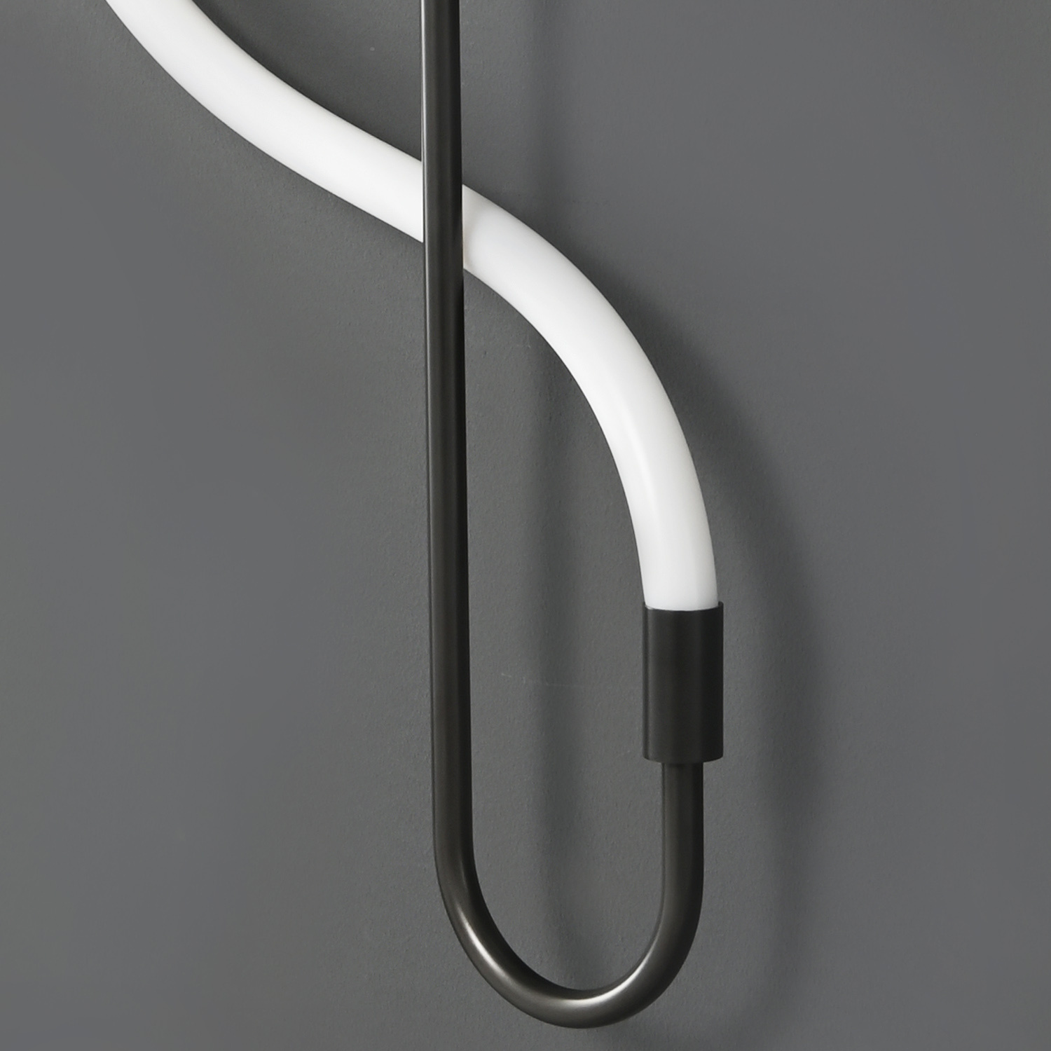 Forma kinkietu ESSA, swoim kształtem przypomina serpentynę lub klucz wiolinowy,