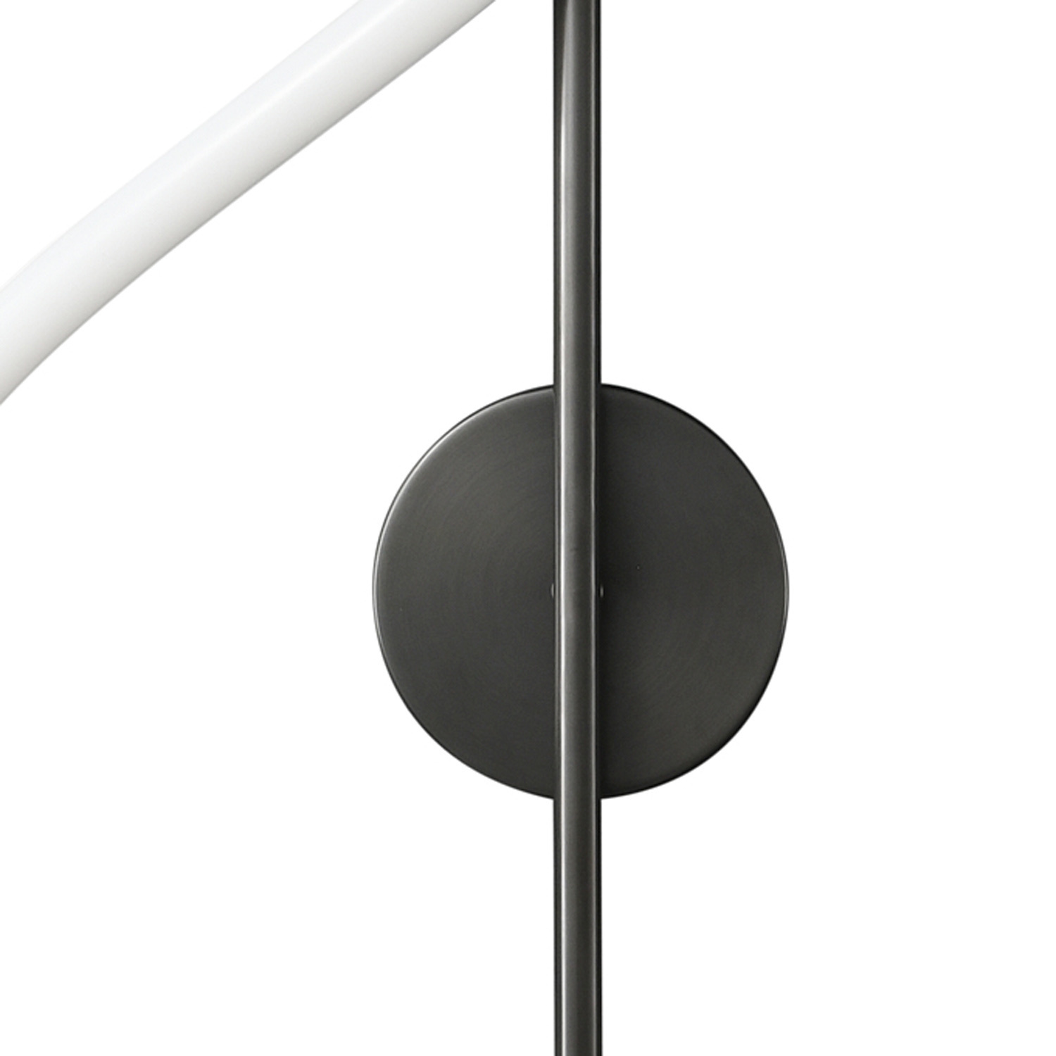Kontrast między bielą a czernią przyciąga uwagę i sprawia, że kinkiet staje się ciekawym elementem dekoracyjnym.