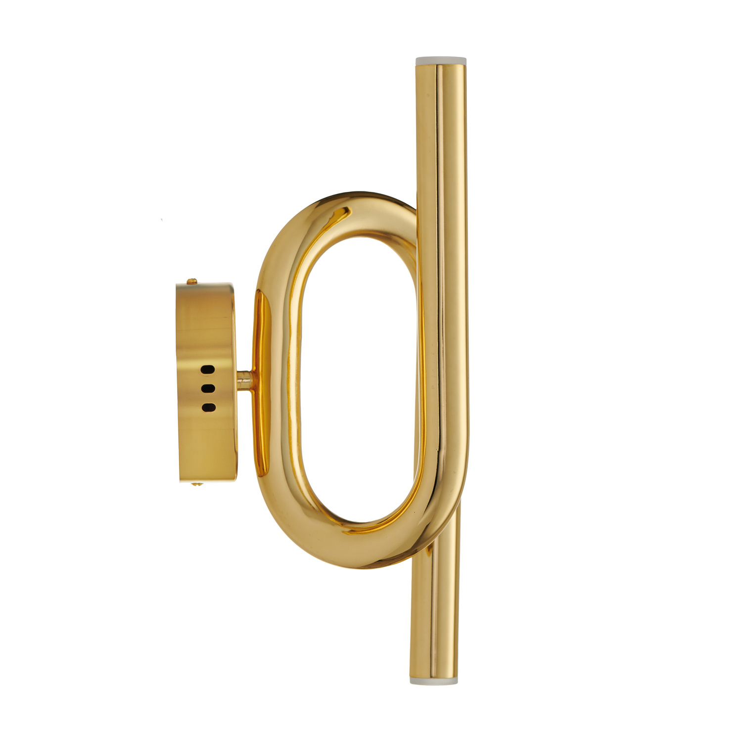 Lampa ścienna MYK o niezwykłej formie skręconej linii w kolorze polerowanego złota to prawdziwe dzieło sztuki użytkowej, która przyciąga wzrok i dodaje wnętrzu dynamiki.