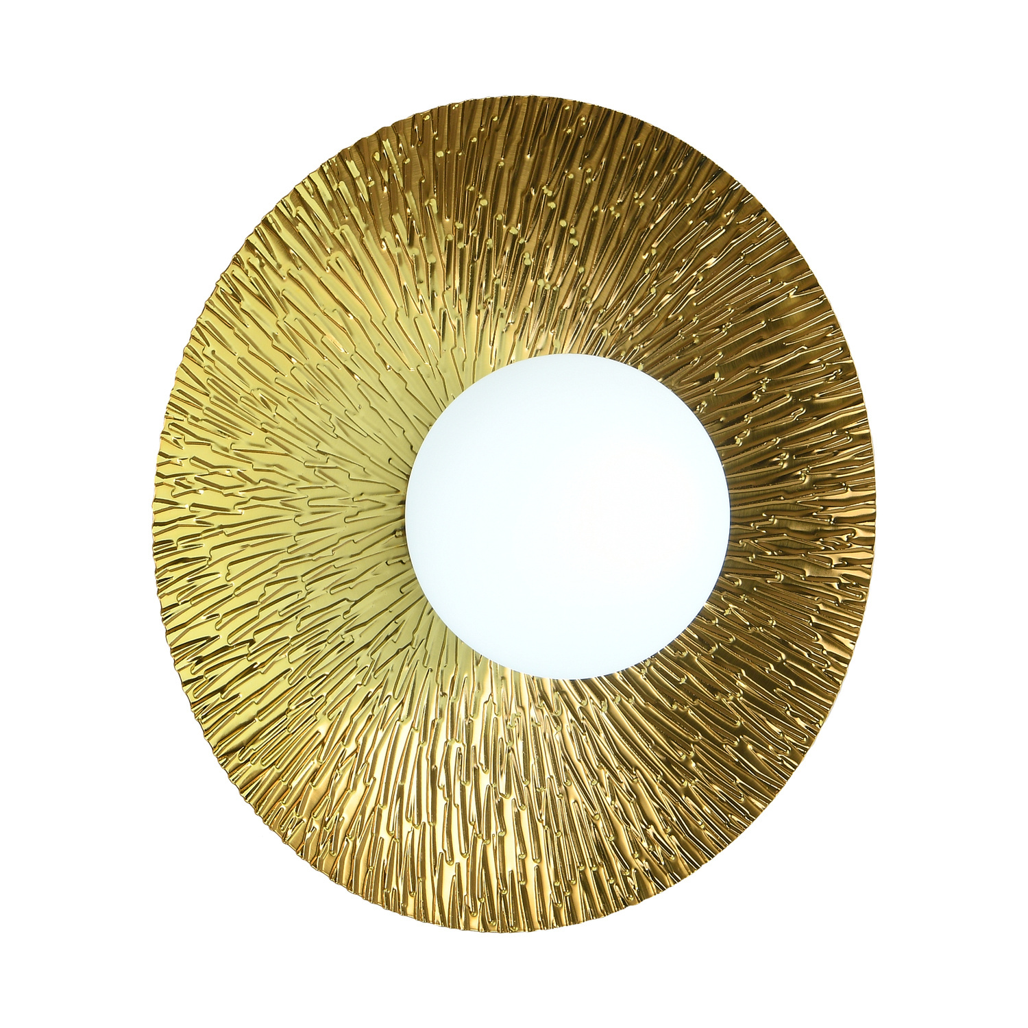 Złoty Kinkiet SUN ma formę okręgu, z centralnie umieszczonym, okrągłym otworem na źródło światła