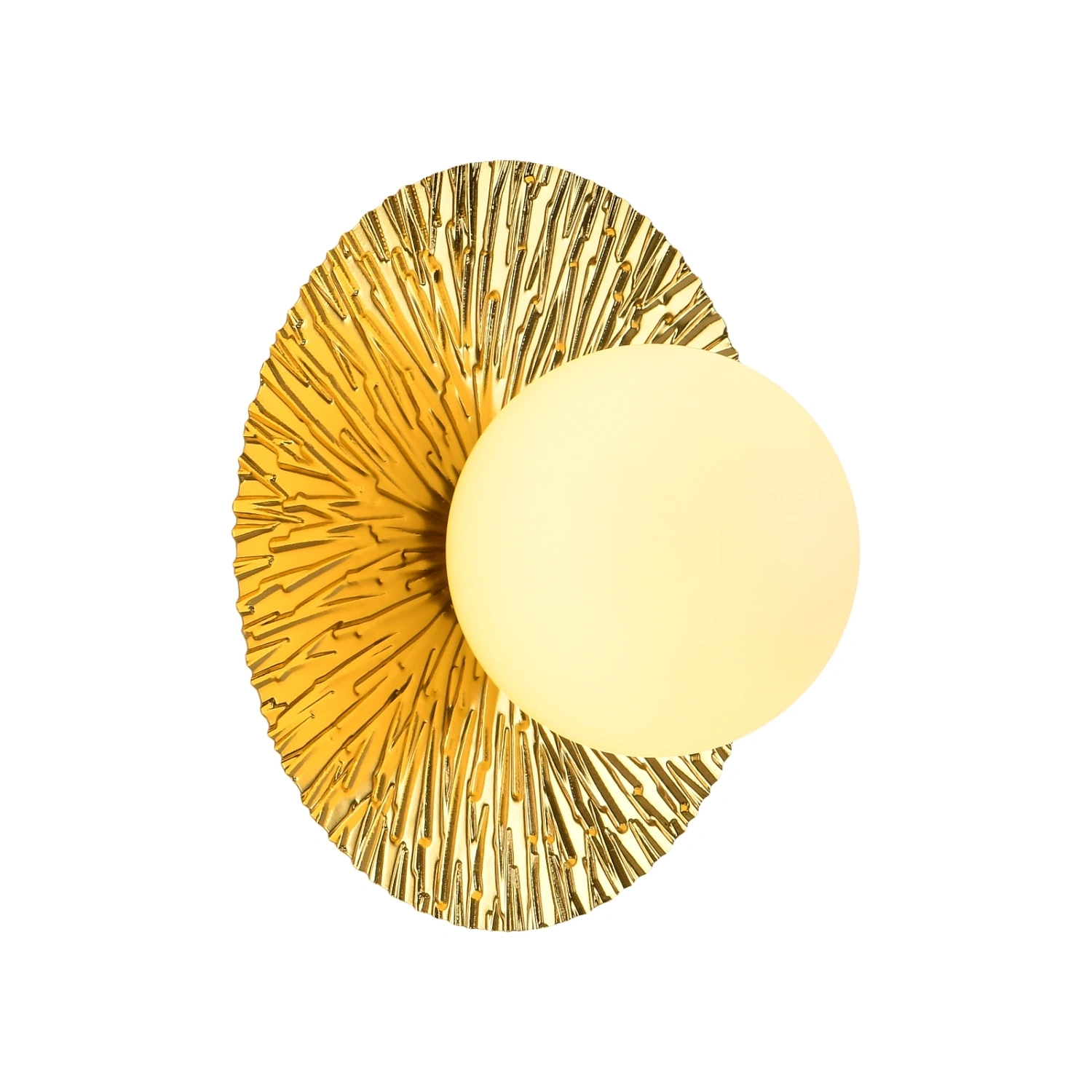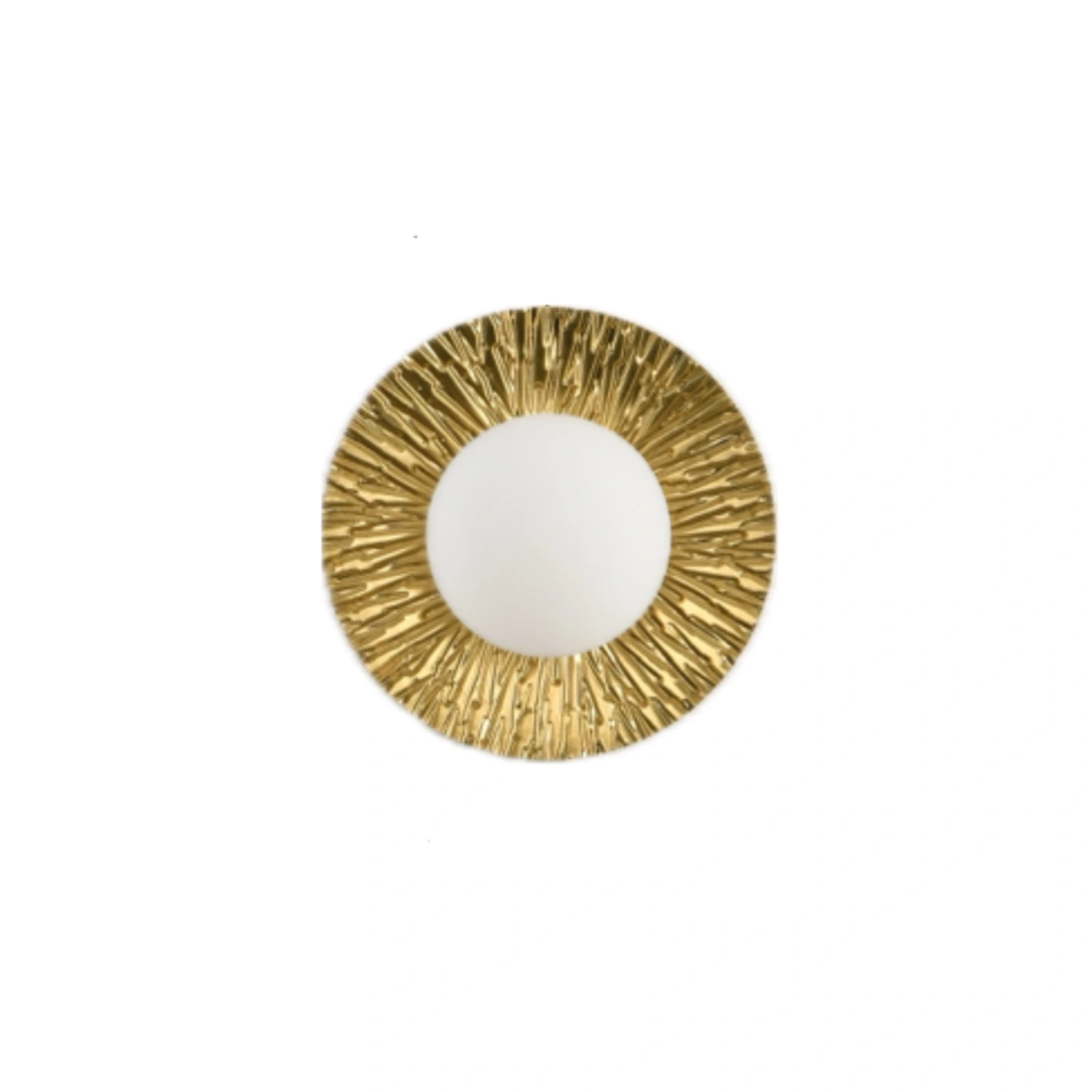 Lampa ścienna SUN to dekoracyjny, nowoczesny kinkiet o okrągłym kształcie w kolorze złotym.