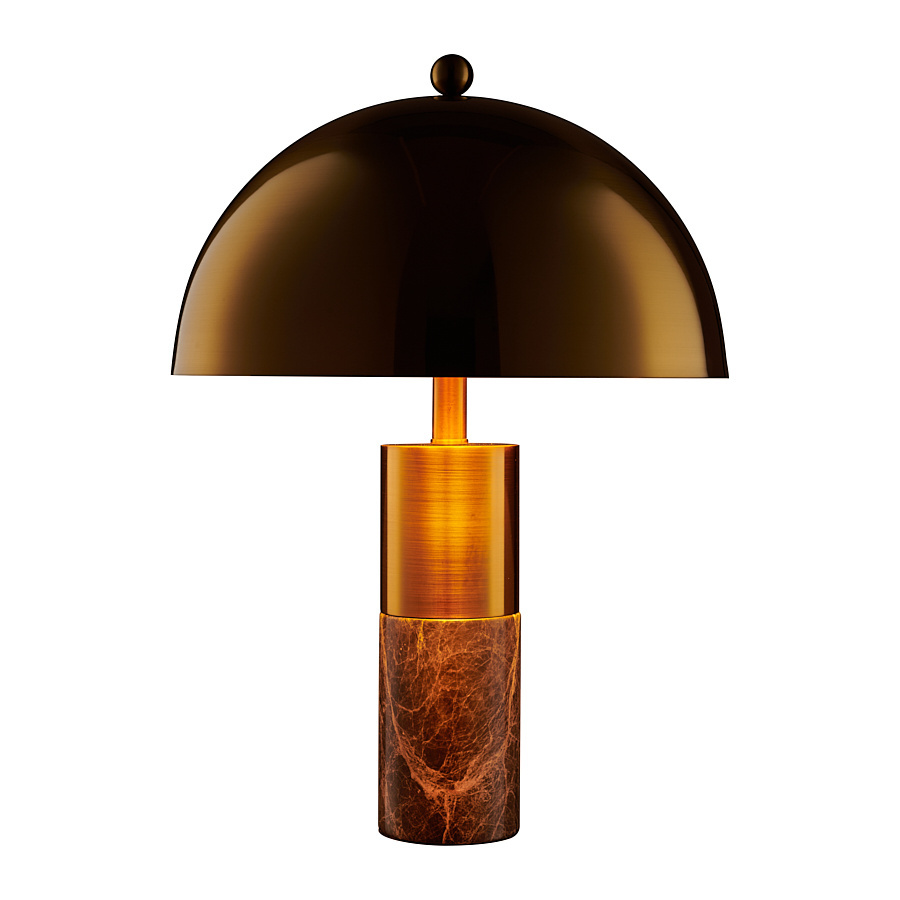 Klosz wsparty jest na kolumnowej podstawie wykonanej z szarego marmuru z ciemniejszymi żyłkami, co zapewnia wyjątkową stabilność oświetlenia.