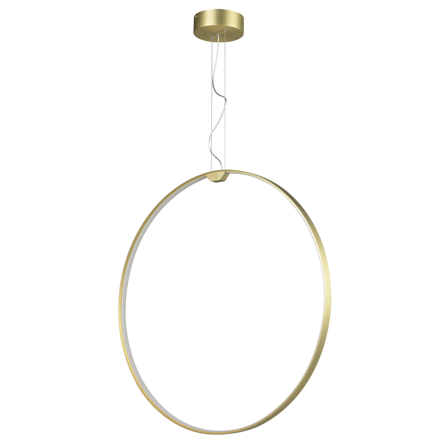 - Lampa wisząca na bazie okręgu z wbudowanym modułem LED. Duża pionowa obręcz w kolorze złotym o imponującej średnicy 74 cm. Oszczędne ledowe światło o przyjemnej barwie 3000K.