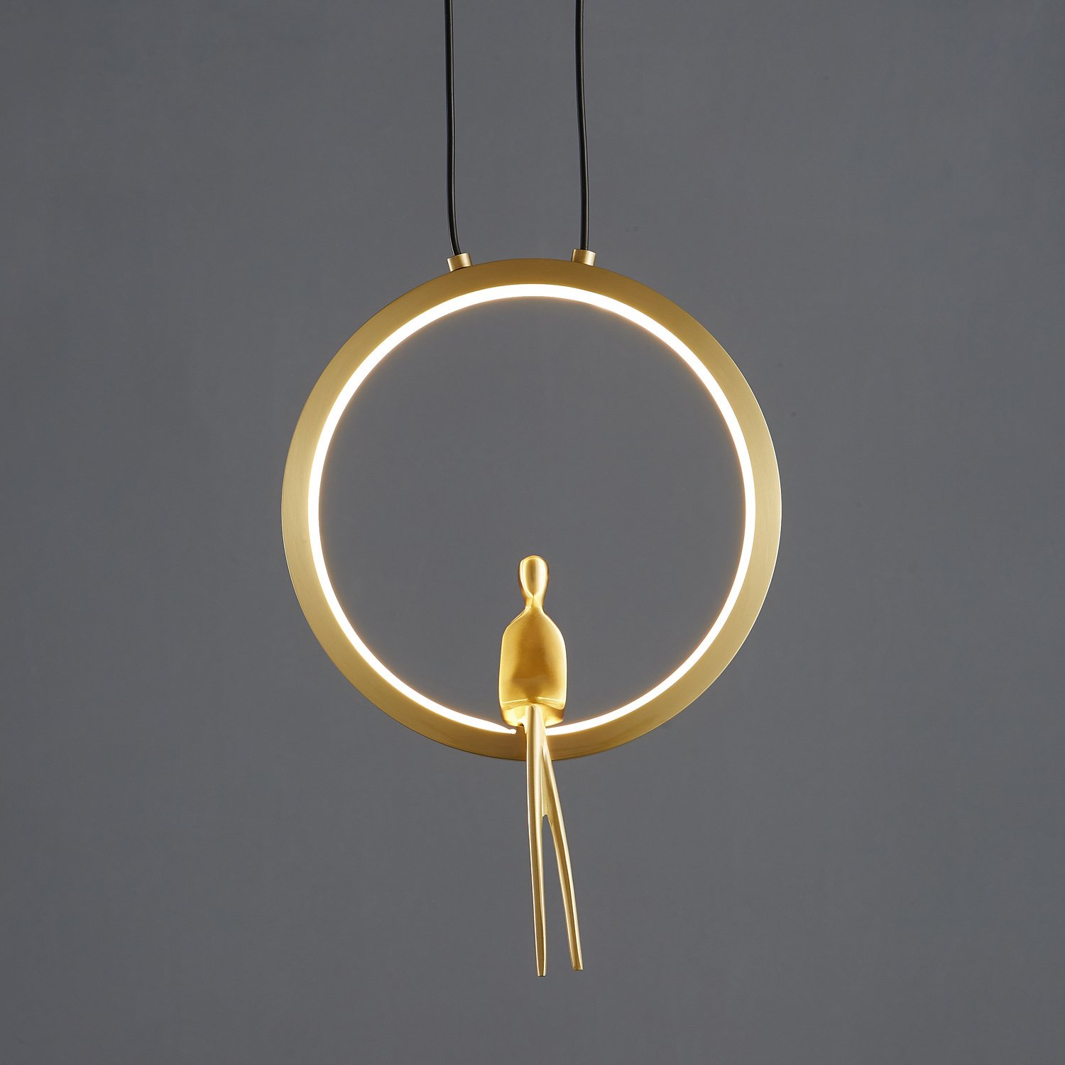 Lampa wisząca AMICI w kształcie pierścienia/okręgu wykonana została w całości ze szczotkowanego mosiądzu.
