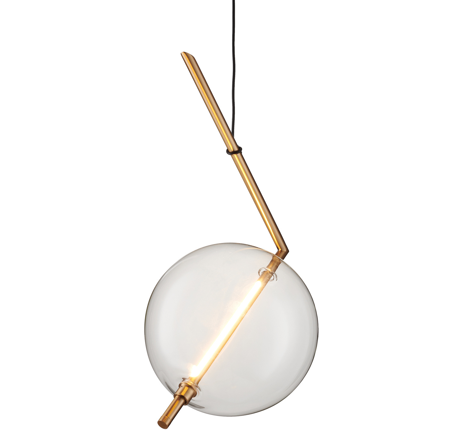 Wyjątkowa lampa wisząca AMORE wykonana została z metalu w kolorze złotym oraz szklanego transparentnego klosza