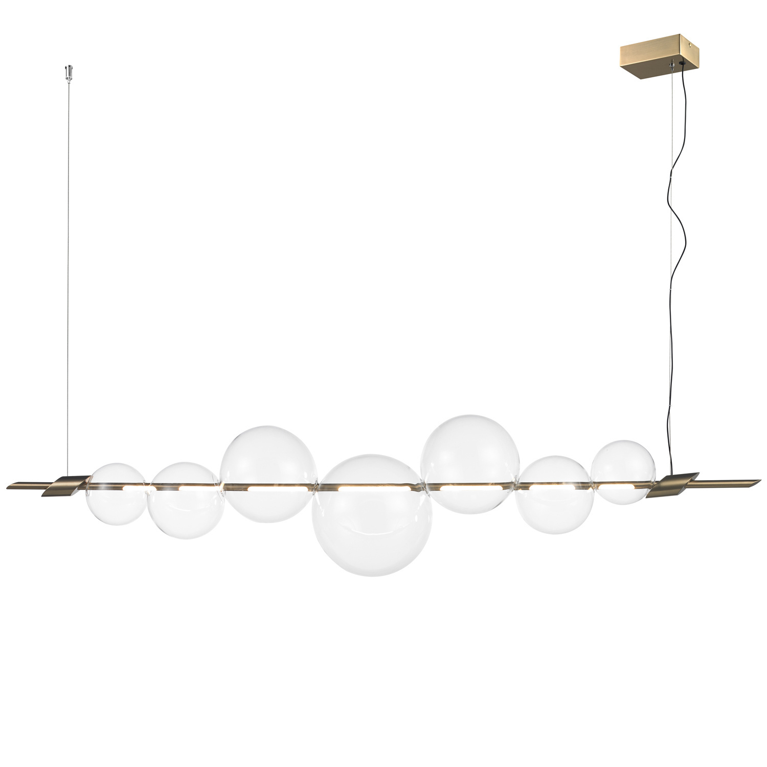 Zwieńczona jest siedmioma szklanymi kulami- kloszami, rozmieszczonymi po przeciwnych stronach, co daje wyjątkowy efekt świetlny.