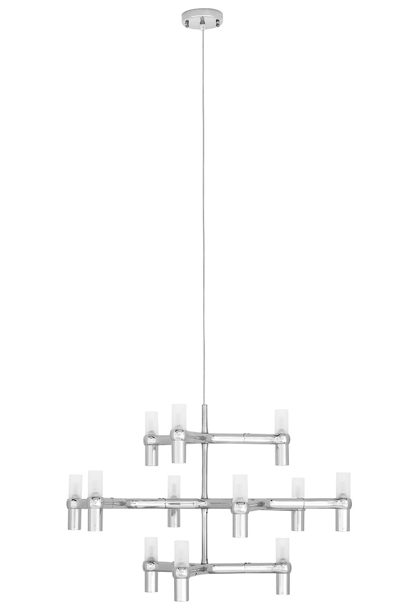 Lampa Atomic została wykonana z chromowanego metalu. Dzięki satynowym kloszom, lampa oferuje ciepłe i rozproszone światło. Lampa jest mniejszą wersją lampy Atomic Grande wyposażoej w 30 kloszy. Światło: 12 x G9 max. 10 W (brak w zestawie) Oprawa: wys. 46 cm / szer. 77 cm / gł. 77 cm Montaż: instalacja sufitowa Waga netto: 22,5 kg Wymiary opakowania: 60 cm / 52 cm / 51 cm.Cechy produktu