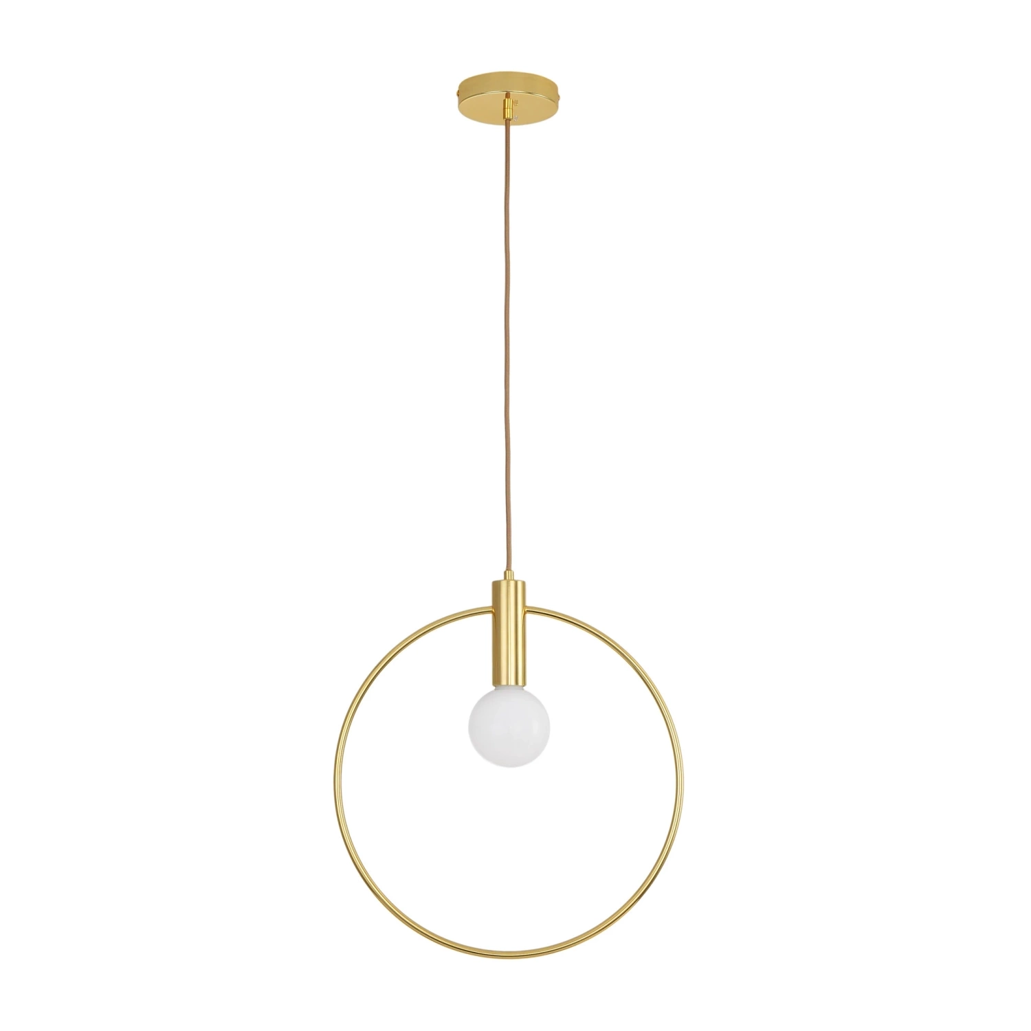Jej okrągła, złota, cienka rama wykonana z delikatnego, metalowego pręta łączy się z designerskim przewodem w oplocie tekstylnym tworząc doskonałą kompozycję.