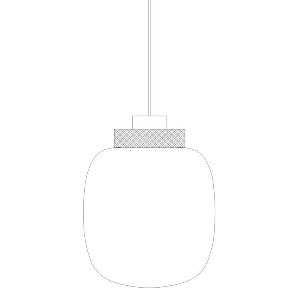 - Lampa wisząca ze szklanym kloszem i dekoracyjnym metalowym pasem.