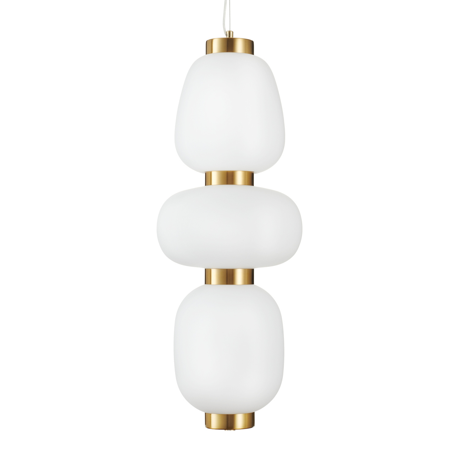 Każdy ze szklanych kloszy oprawy oświetleniowej BRILLA-3 jest oddzielony złotym, metalowym pierścieniem, co nadaje lampie luksusowego wyglądu.