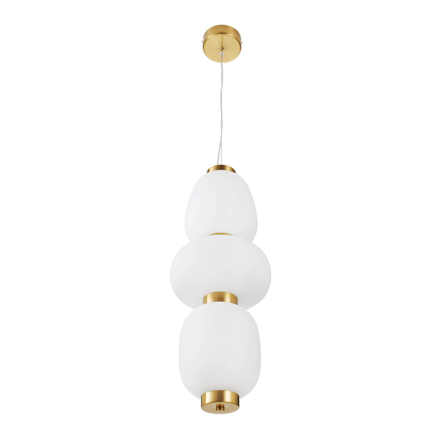 - Elegancka lampa wisząca BRILLA – połączenie białego szkła i złotych detali. Nowoczesny design z organicznymi kształtami. Doskonała do salonu, jadalni i biura.