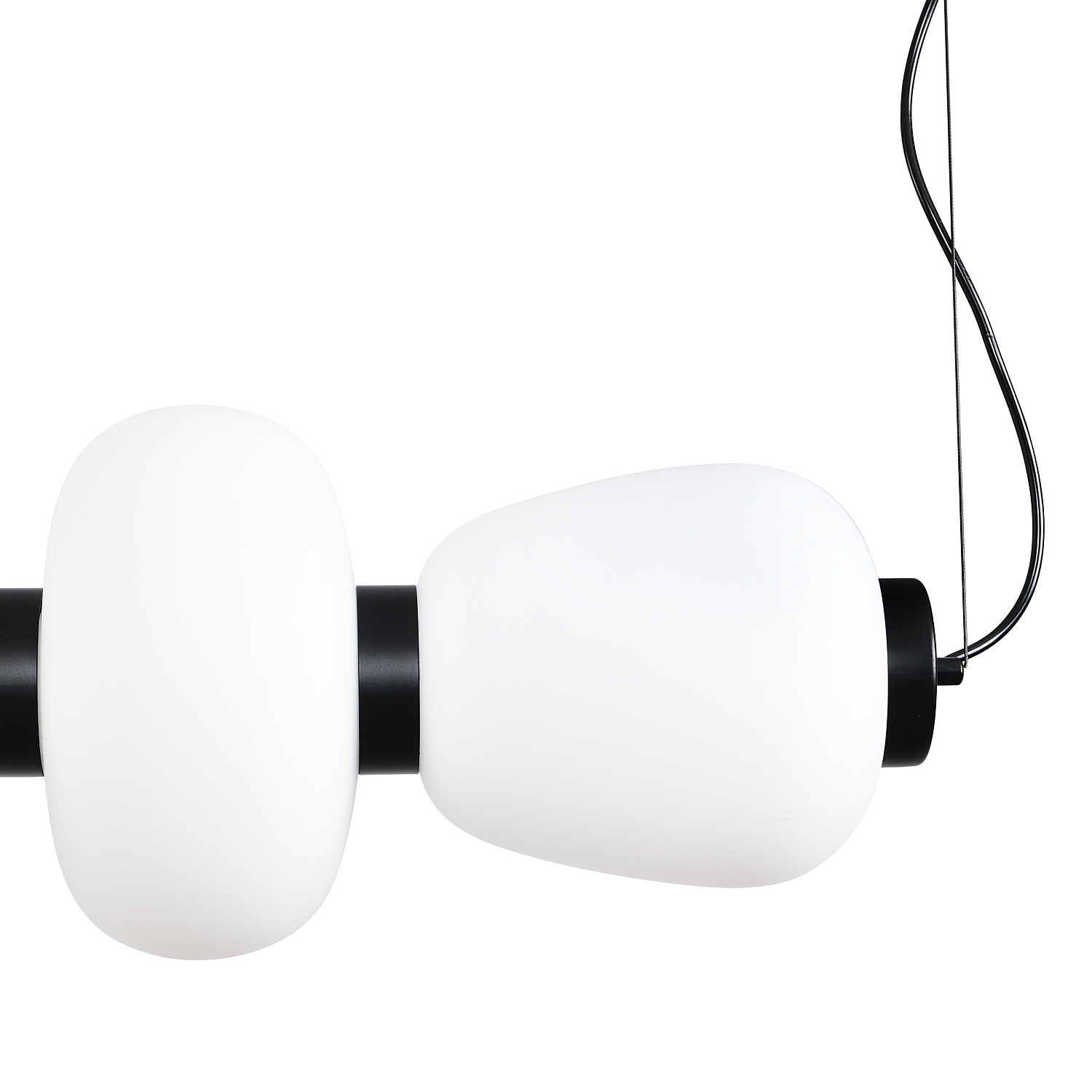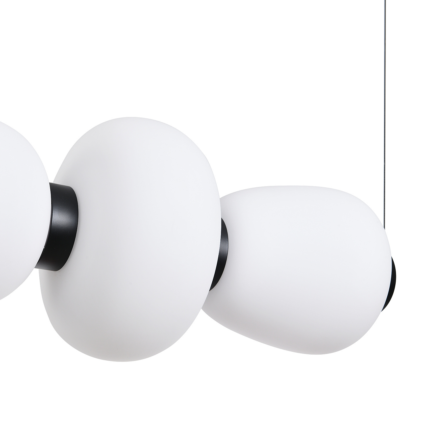 - Luksusowa lampa ledowa białe szkalne kule z czarnym wykończeniem. Pozioma forma z dużymi kloszami w kształcie kamieni.