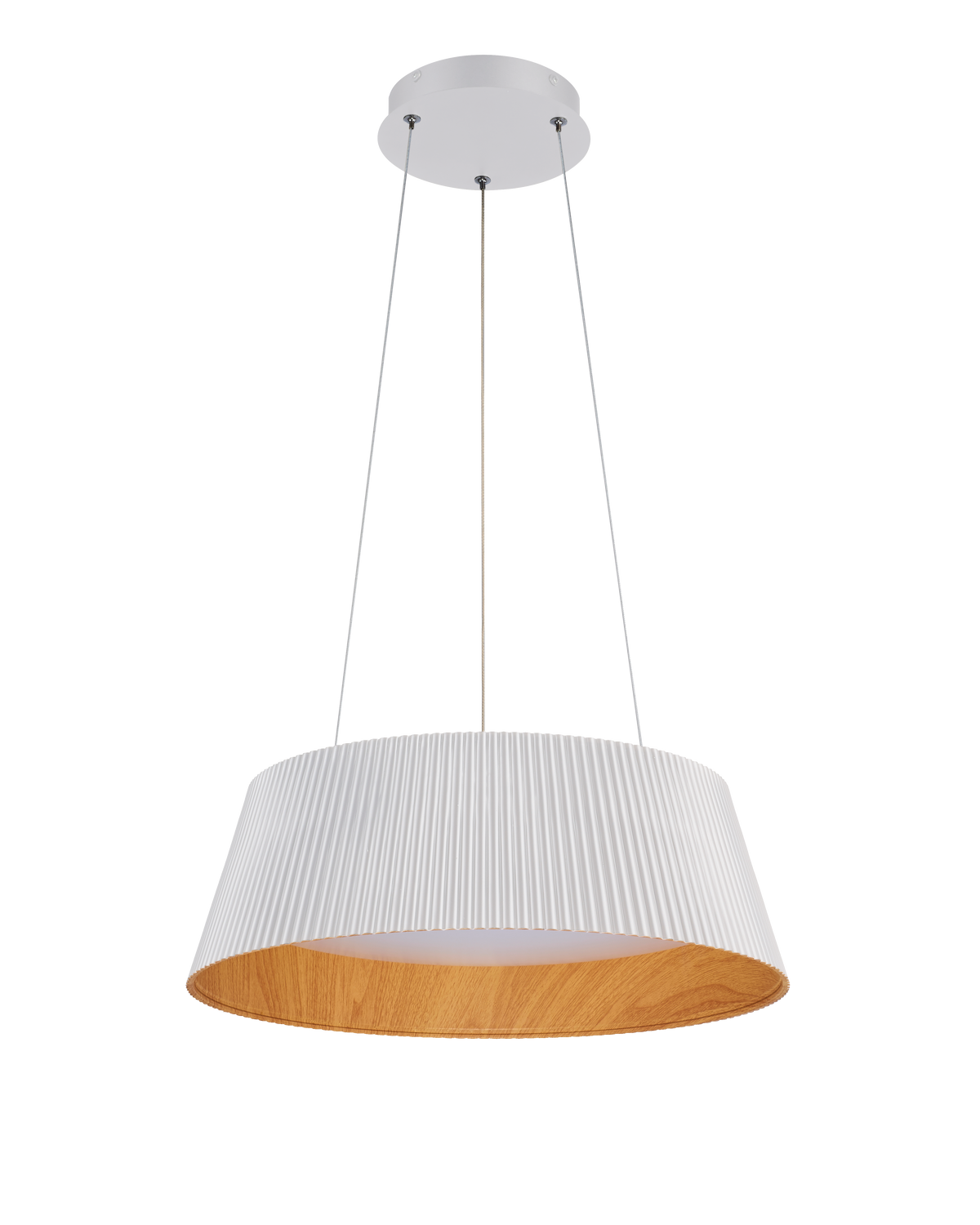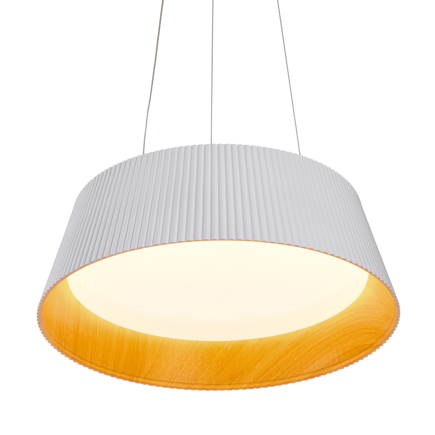 Lampa Wisząca LED FRILL 45cm Biała Ryflowana Drewnopodobne Wnętrze Regulowana Wysokość
