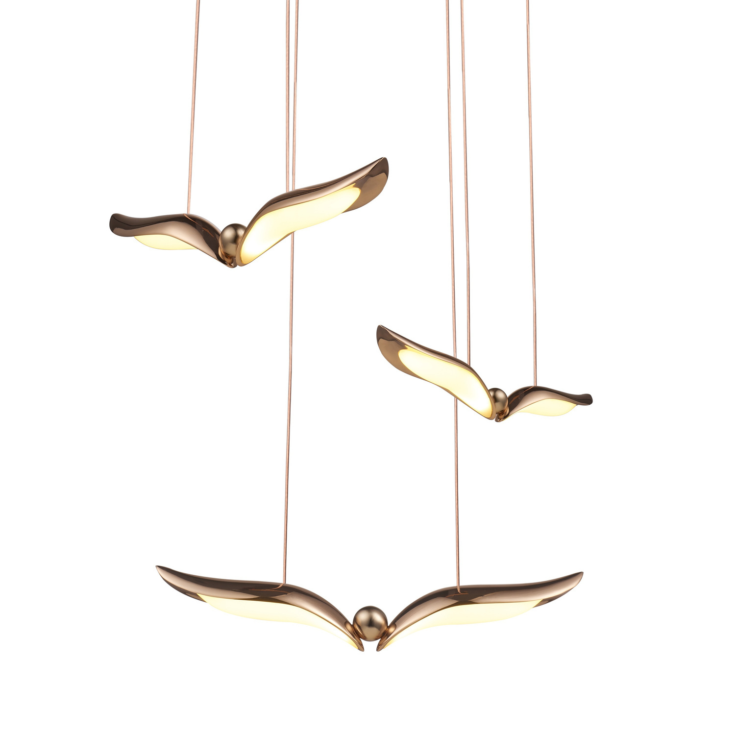 • Złota lampa wisząca GUFO 3 nowoczesna kompozycja trzech ptaków. Eleganckie oświetlenie LED, artystyczny akcent do Twojego domu.