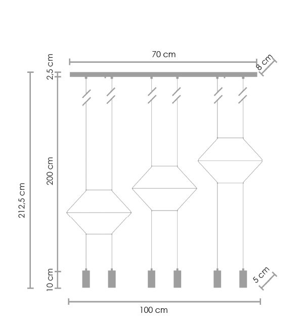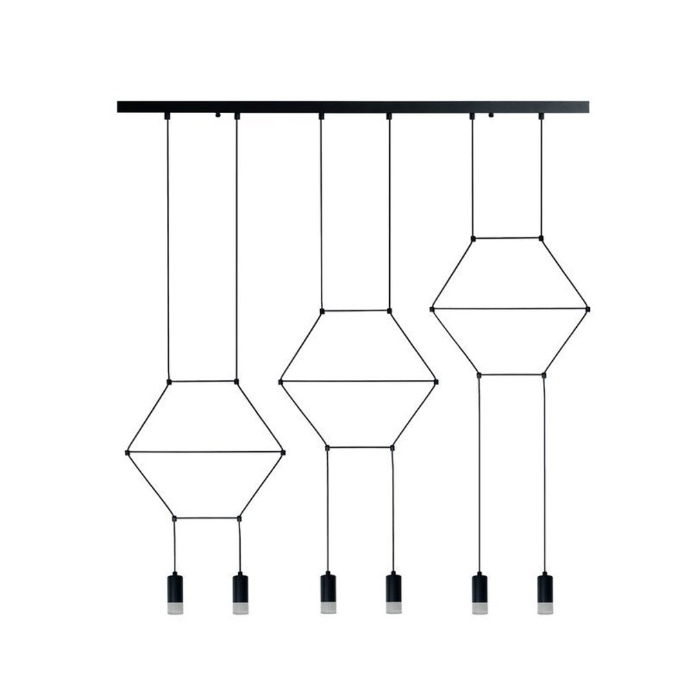 - Lekka forma lampy wiszącej zachwycająca stuprocentowym minimalizmem z sześcioma źródłami światła