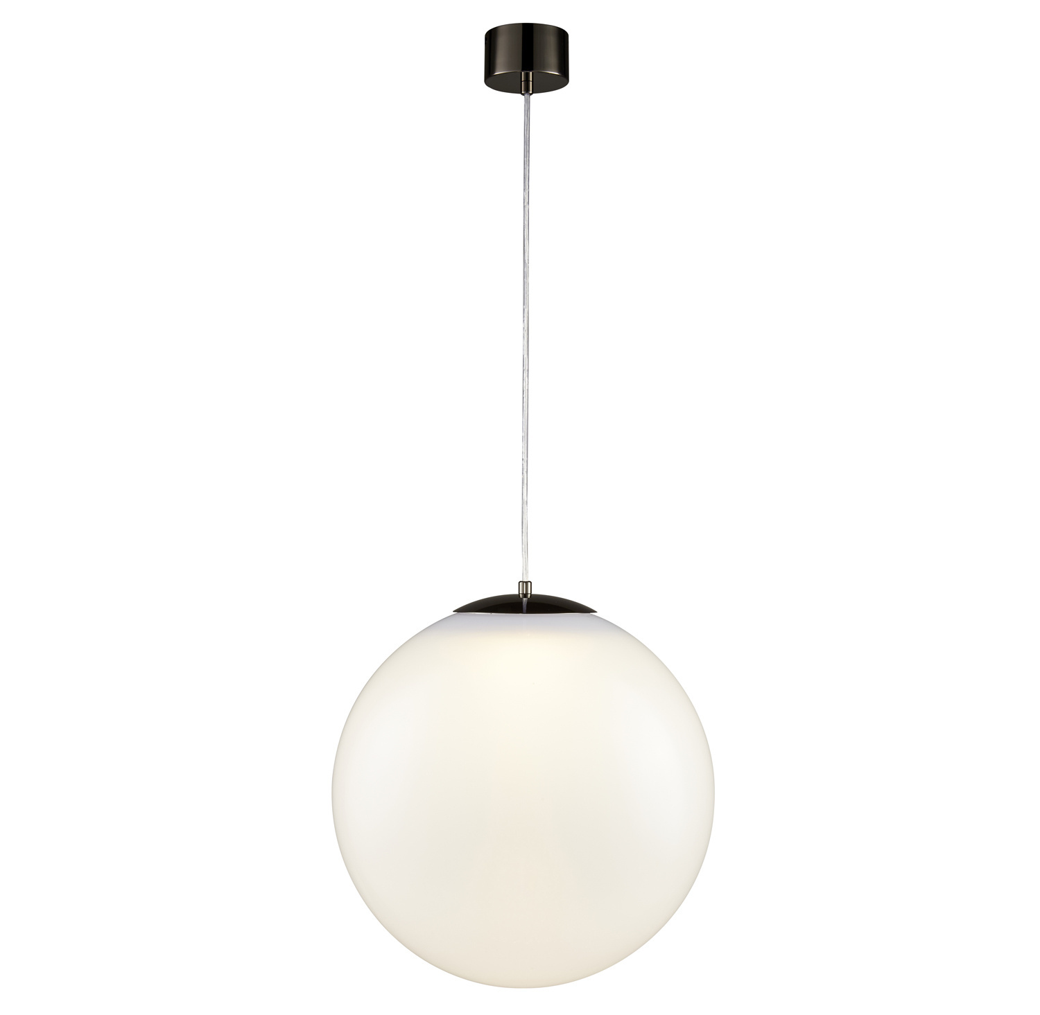 Okrągła lampa wisząca NUBE o średnicy 40 cm wykonana jest z mlecznego akrylu.