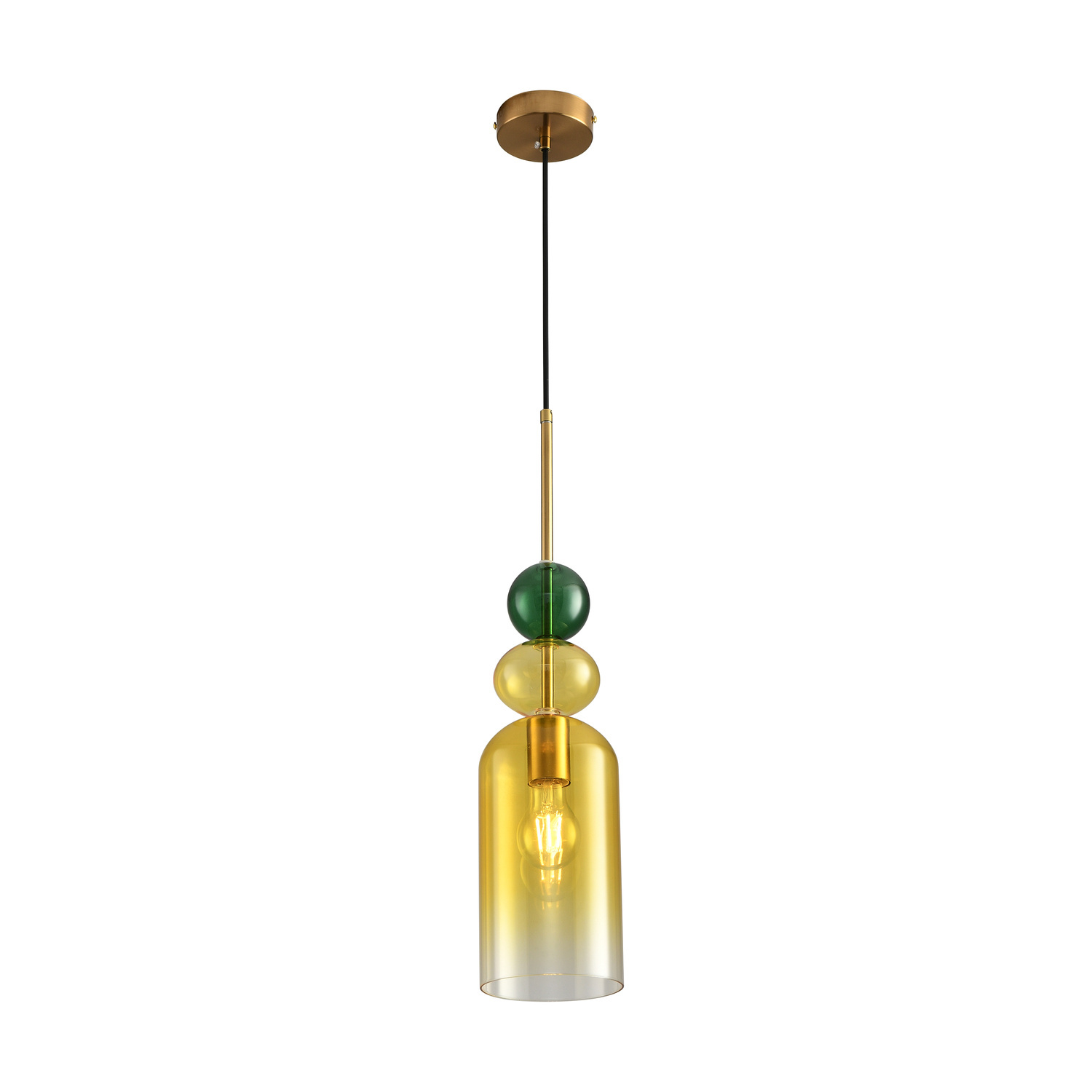 - Lampa wisząca z kolorowymi szklanymi kloszami.