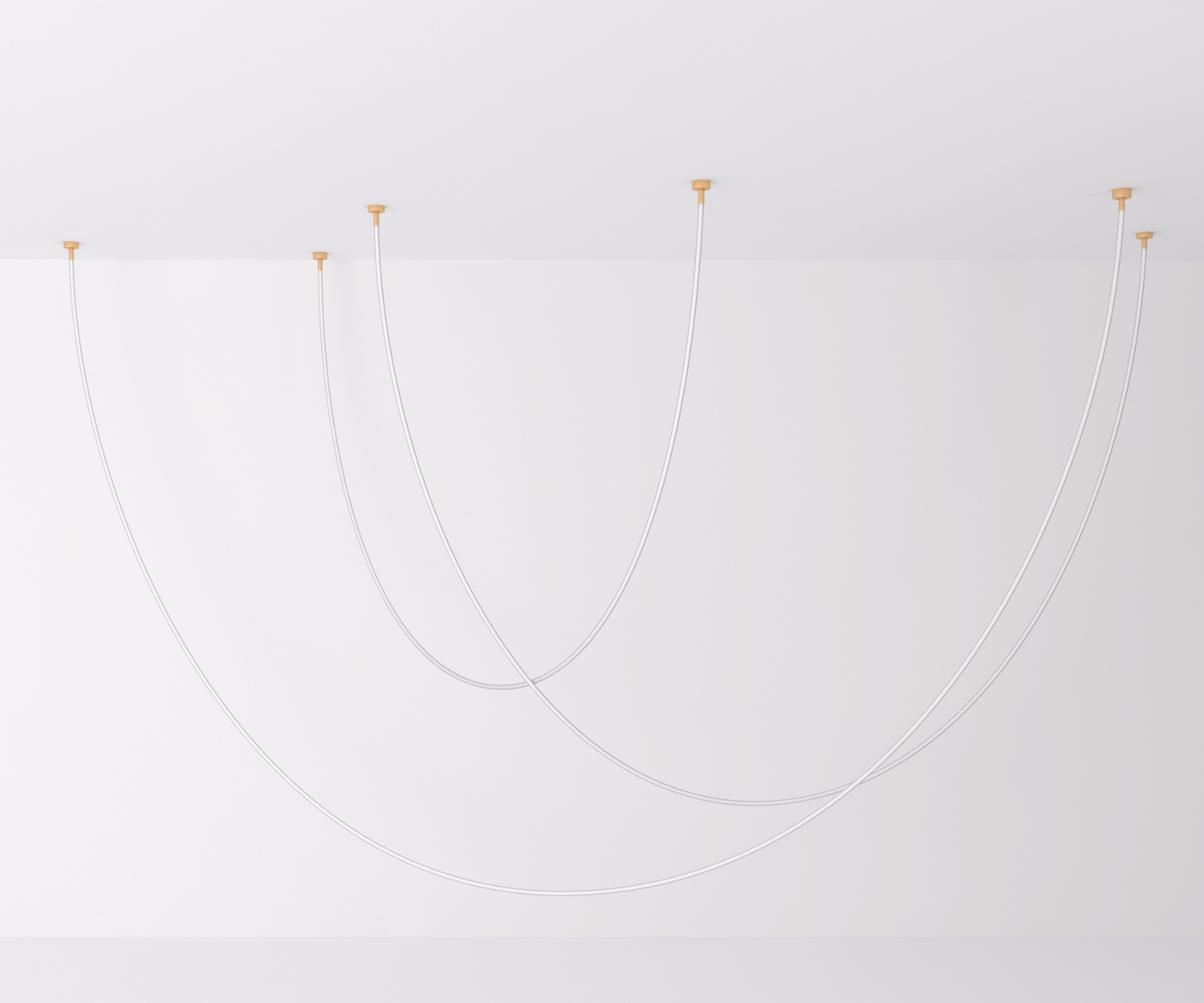 Wąż ledowy zamocowany jest na złotych, eleganckich uchwytach przytwierdzanych do sufitu.