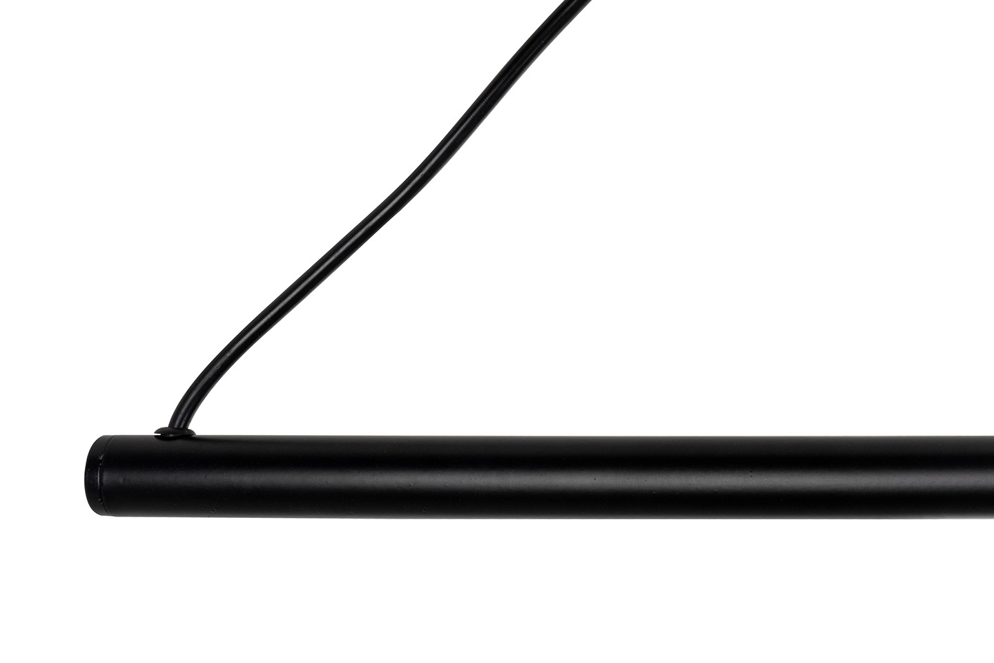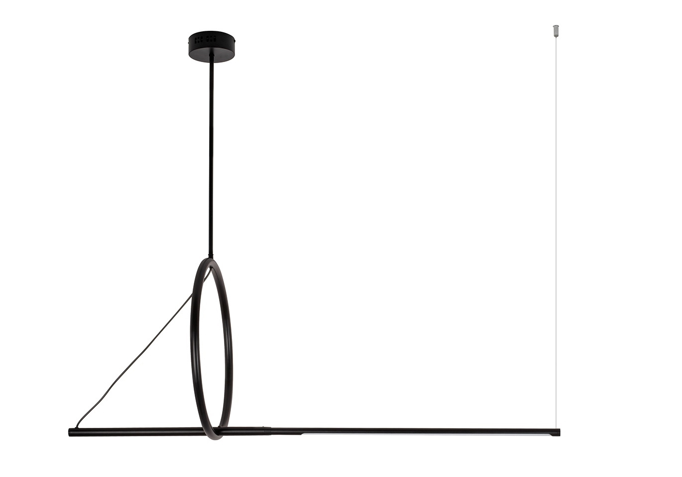 Stick to nowoczesna lampa wisząca. Lekka, geometryczna konstrukcja będzie praktyczną ozdobą pomieszczenia. Głównym elementem lampy jest podłużne, ledowe źródło światła. Całość połączona jest z metalowym okręgiem, który stabilizuje i poziomuje lampę. Umieszczona jest na podsufitce za pomocą 3 częściowego, metalowego łącznika i stalowej linki. Zapewnia to regulację wysokości całej lampy. Wszystkie elementy metalowe są w kolorze czarnym. Dzięki akrylowej osłonie leda lampa odpowiednio rozprasza światło. Stick doskonale sprawdzi się w domu oraz pomieszczeniach biurowych. Światło: LED 11 W / 880 lm / 3000 K Wymiary: wys. 210 cm / szer. 120 cm / gł. 45 cm Oprawa: wys. 45 cm / szer. 120 cm Klosz LED: dł. 70 cm Mocowanie: wys. 4,5 cm / śr. 12 cm Regulacja wysokości: 1 x 50 cm / 1 x 50 cm / 1 x 30 cm Element mocowania linki: wys. 3 cm / śr. 1 cm Waga netto: 4,5 kg Wymiary opakowania: 125 cm / 50 cm / 12 cm.Cechy produktu