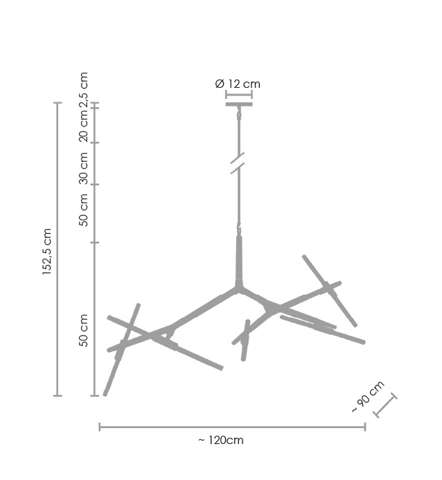 Lampa posiada 3 rurki montażowe od długościach 20, 30 oraz 50cm, które można dowolnie ze sobą łączyć