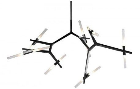 Designerska lampa wisząca w kolorze czarnym o asymetrycznej formie z możliwością regulacji ramion w wielu płaszczyznach.