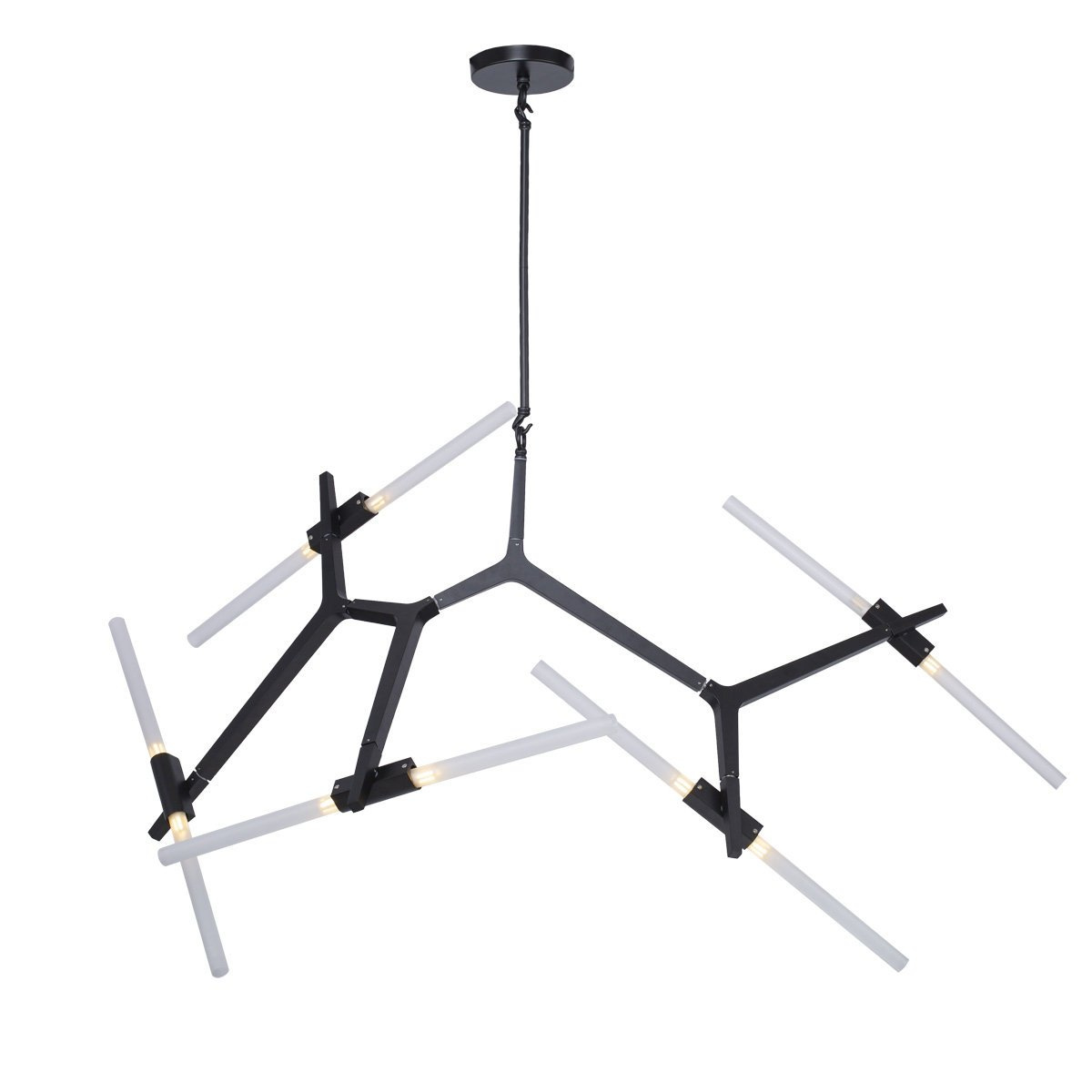 Klosze w kształcie rurek wykonane są z mlecznego satynowego szkła.
