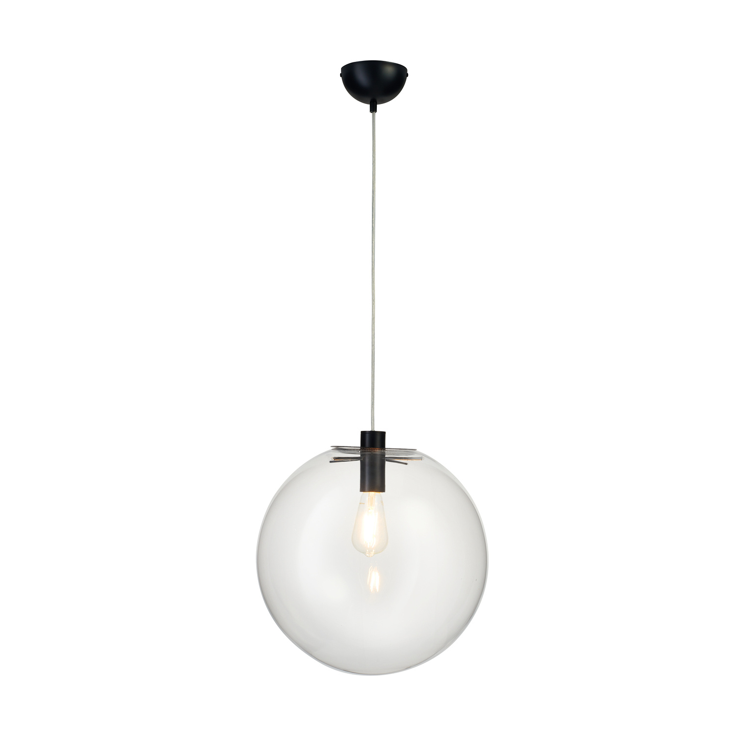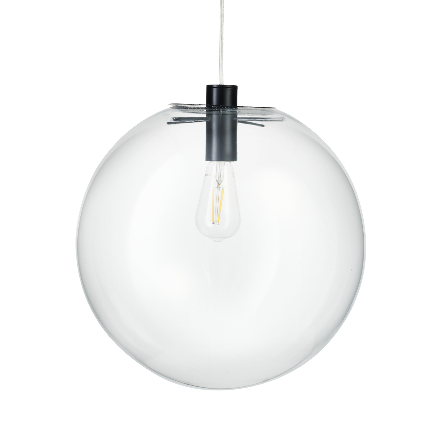 Minimalistyczna, subtelna lampa wisząca TONDA w kształcie szklanej kuli, wykonana jest z transparentnego szkła.