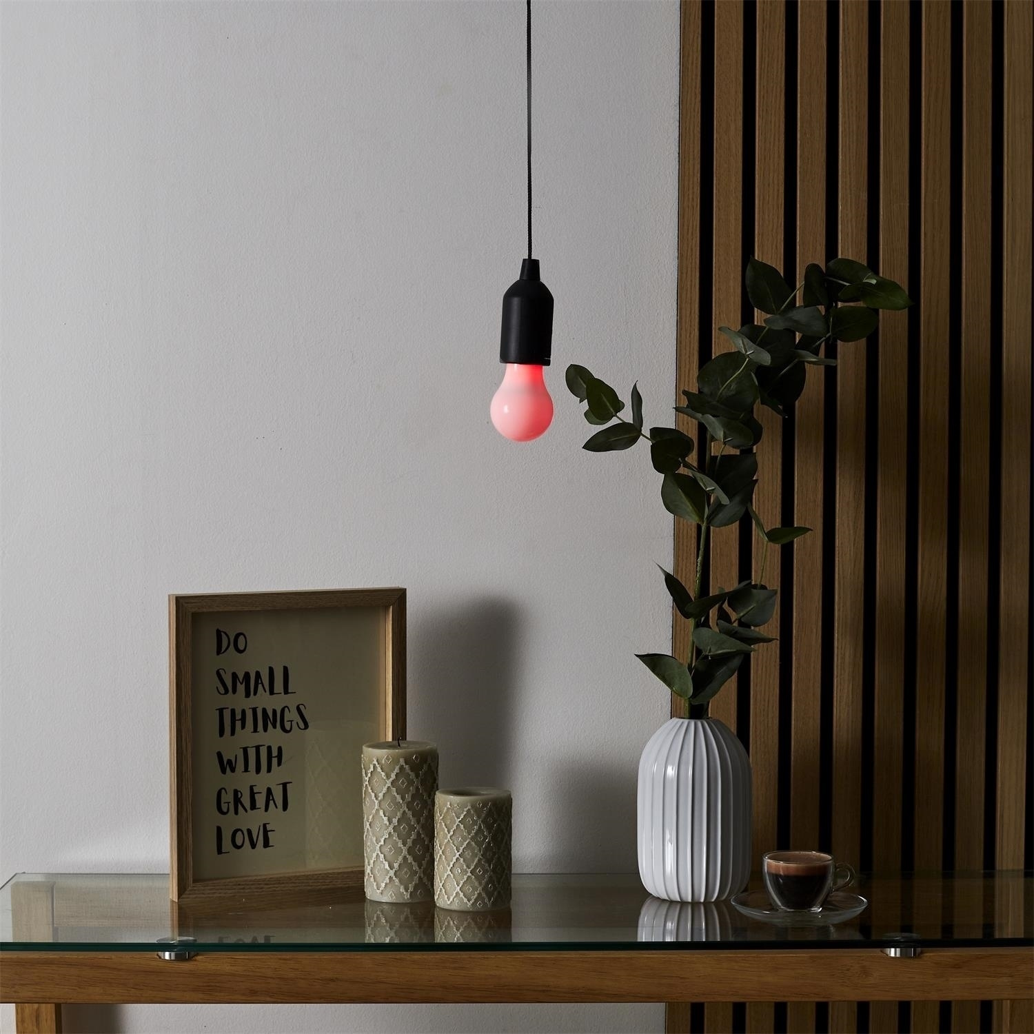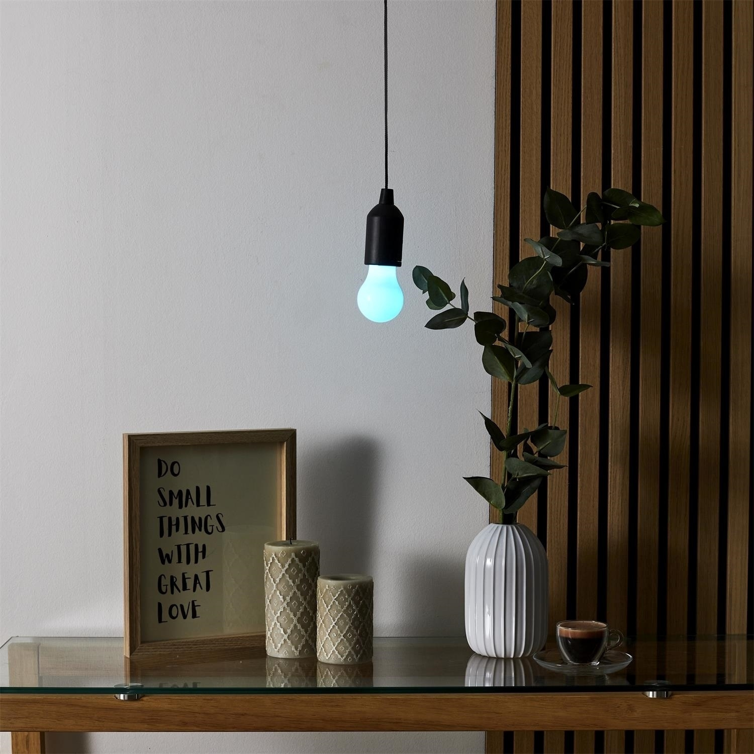 Ledowa lampka żarówka na baterie sprawdzi się gdy chcemy oświetlić kącik w którym nie mamy zasilania sieciowego. Lampka o mlecznym kloszu przypominającym swoim kształtem żarówkę o średnicy 5cm jest łatwa w montażu. Wystarczy przyczepić ją za pomocą sznurka do jakiegokolwiek elementu. Włącznik lapmki umieszczony został na jej elemencie z tworzywa. Wystarczy kliknąć aby ją właczyć. Zasilana na baterie (brak w zestawie). Długość sznurka 110 cm. Lampka wyposażona w pilot, który umożliwia zmiane kloru światła.Cechy produktu