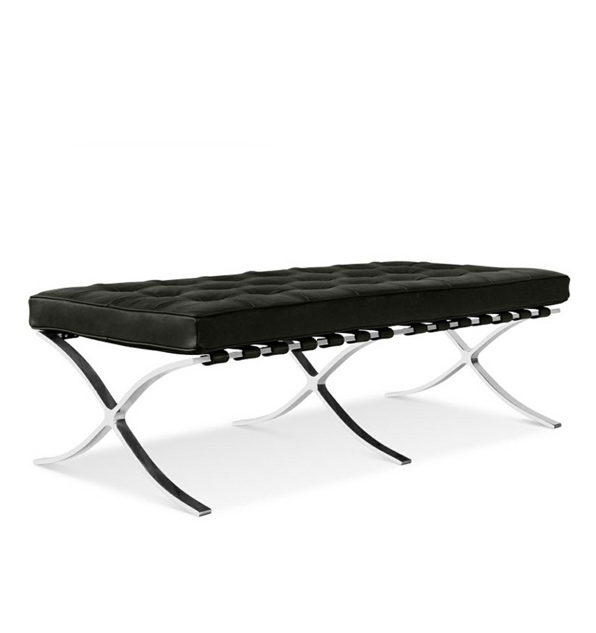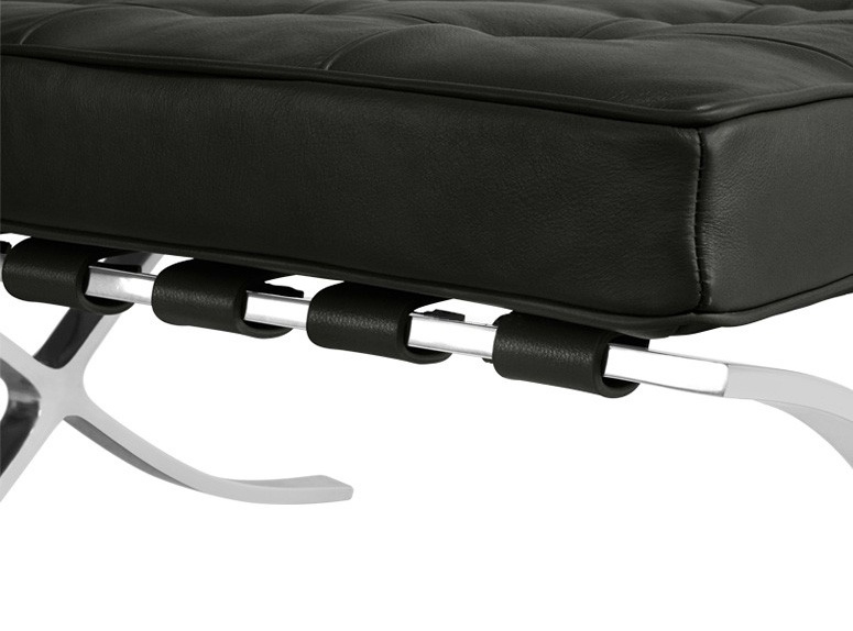 - Ławka Barcelon to ikona designu. Barcelon tapicerowana jest włoską skórą naturalną w kolorze czarnym. Stelaż wykonany z wysokiej jakości stali nierdzewnej polerowanej. Dodatkowo wewnątrz całego stelaża jest stalowy rdzeń który wzmacnia konstrukcję i zapew