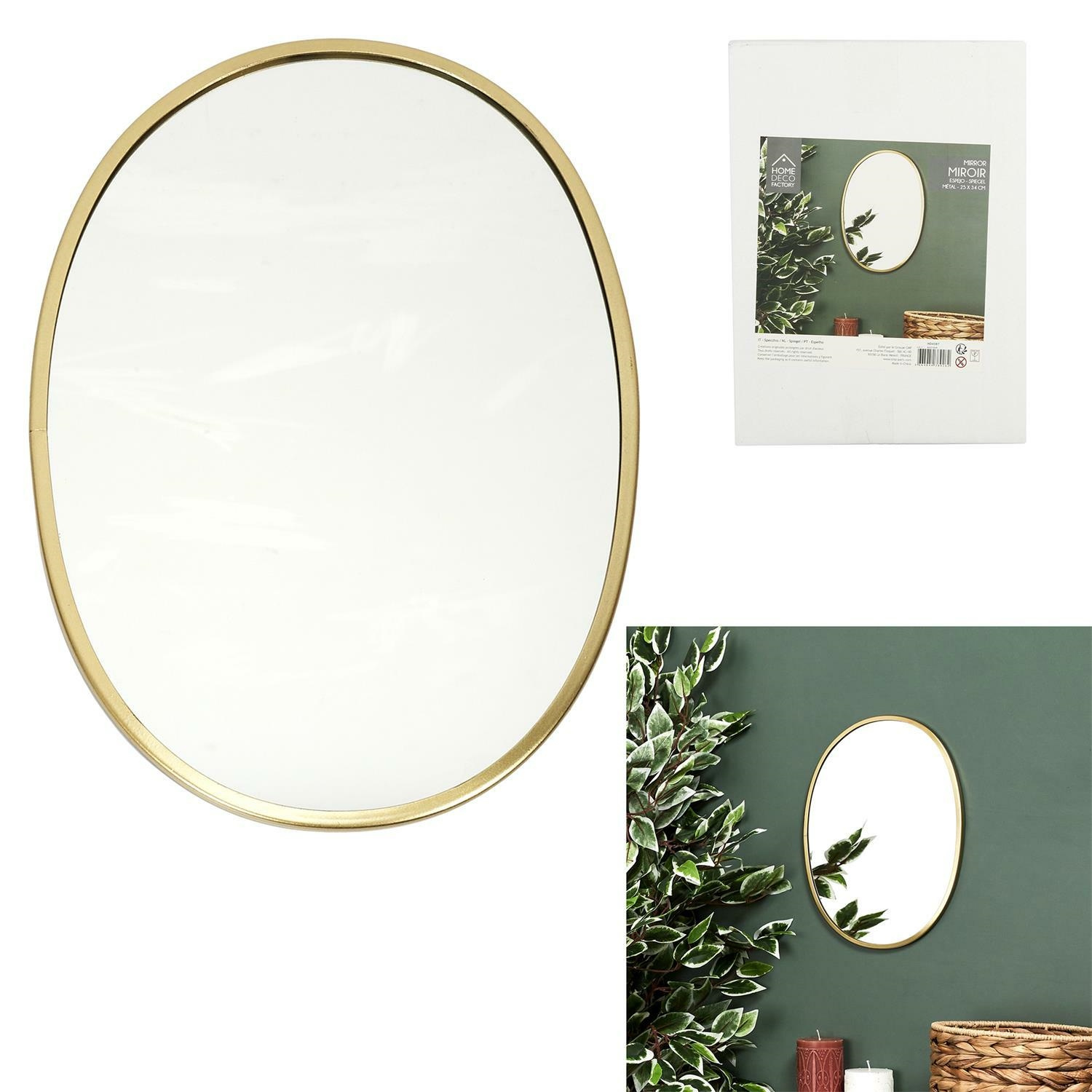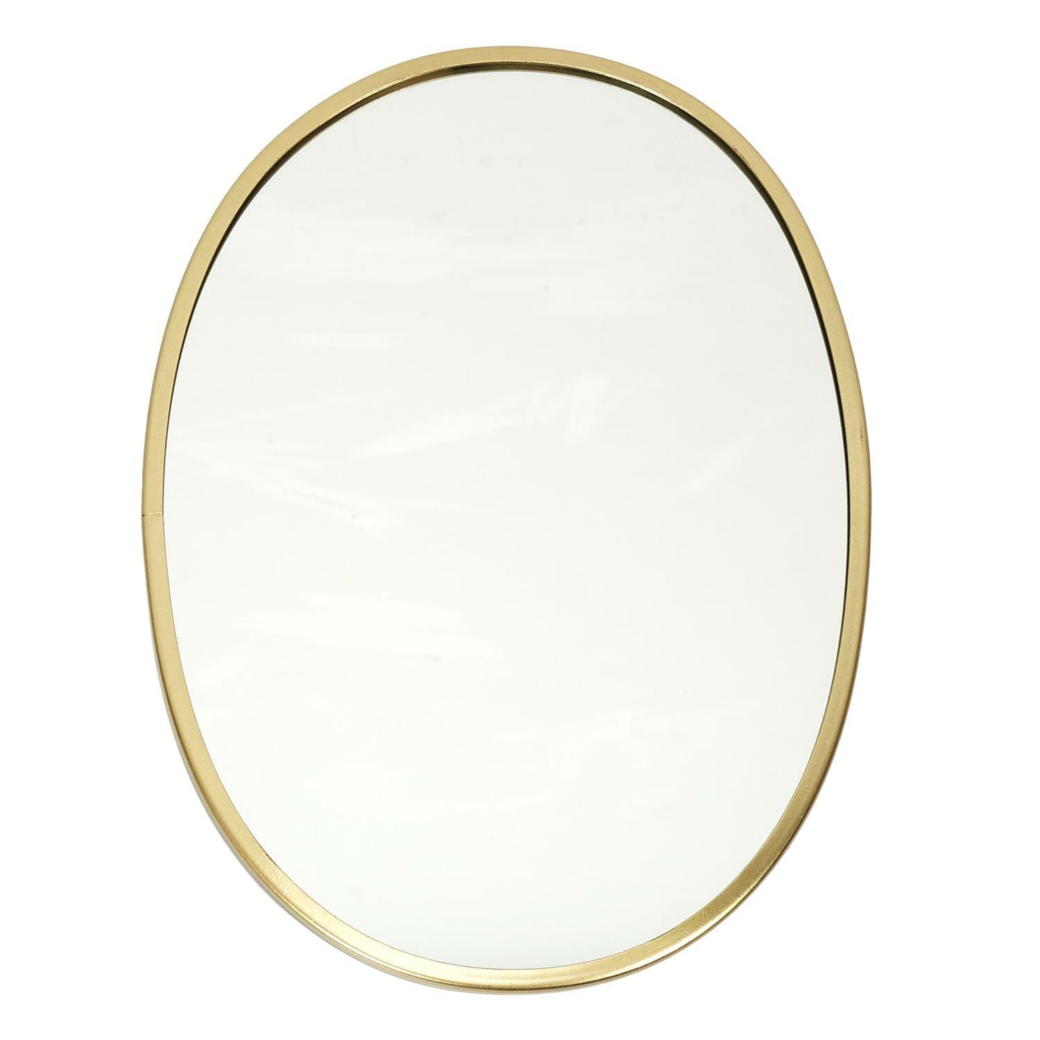 Modne lustro w stylu Hampton o złotej obłej ramie będzie idealnym wykończeniem aranżacji przedpokoju lub sypialni. Metalowa złota rama lustra wykończona na wysoki połysk dodaje mu eleganckiego i nienachalnego wyglądu. Lustro o złotej metalowej ramie doda wnętrzu blasku. Metalowa rama o grubości ok. 1 cm jest niezwykle elegancka. Owalny kształt lustra sprawia że może być ono ozdoba nie tylko łazienki, ale również przedpokoju lub salonu. Lustro posiada dwa zaczepy do zawieszenia go na ścianie. Wymiary opakowania: 40x29x15 cmCechy produktu