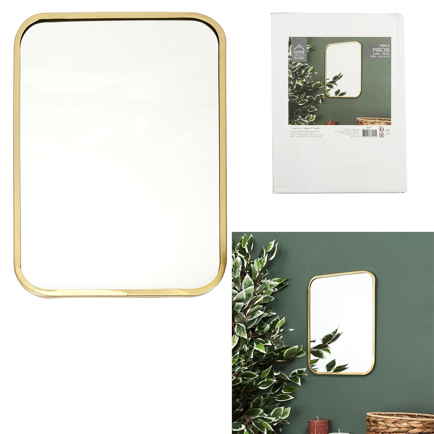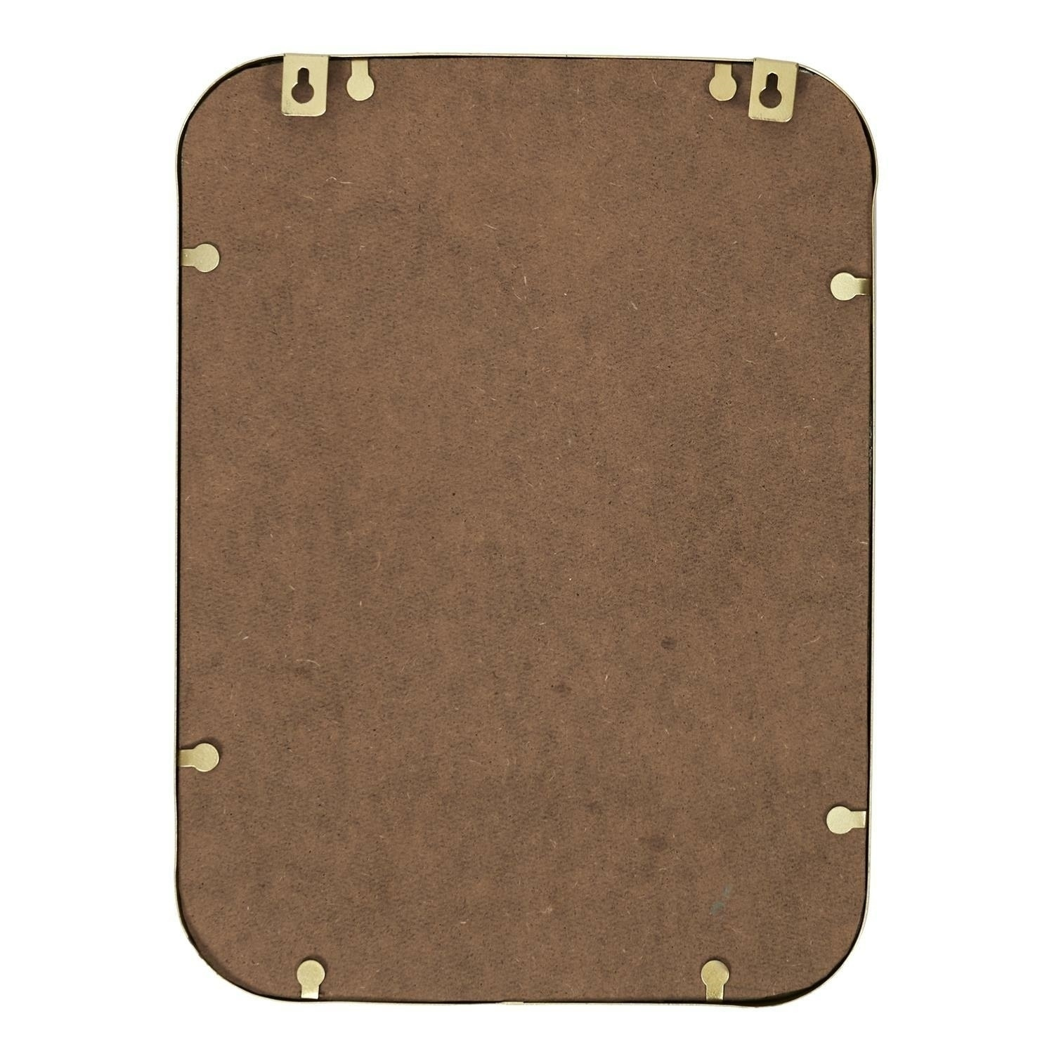 Modne lustro w stylu Hampton o złotej obłej ramie będzie idealnym wykończeniem aranżacji przedpokoju lub sypialni. Metalowa złota rama lustra wykończona na wysoki połysk dodaje mu eleganckiego i nienachalnego wyglądu. Zaokrąglone rogi lustra dodają delikatności. Lustro o złotej metalowej ramie doda wnętrzu blasku. Metalowa rama o grubości ok. 1 cm posiada zaokrąglone rogi. Prostokątne lustro posiada dwa zaczepy do zawieszenia go na ścianie. Wymiary opakowania: 40x29x15 cmCechy produktu
