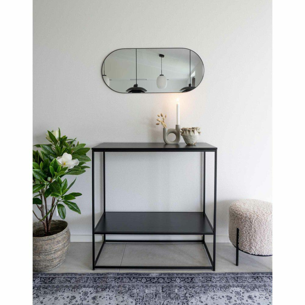 - Lustro o owalnym kształcie w czarnej owalnej ramie to dodatek do nowoczesnego przedpokoju lub łazienki. Lustro ścienne o wysokości 80 cm to modny dodatek, który ozdobi pustą ścianę. Rama malowana proszkowo na czarno, dzięki swojej wąskiej formie nie zakłó