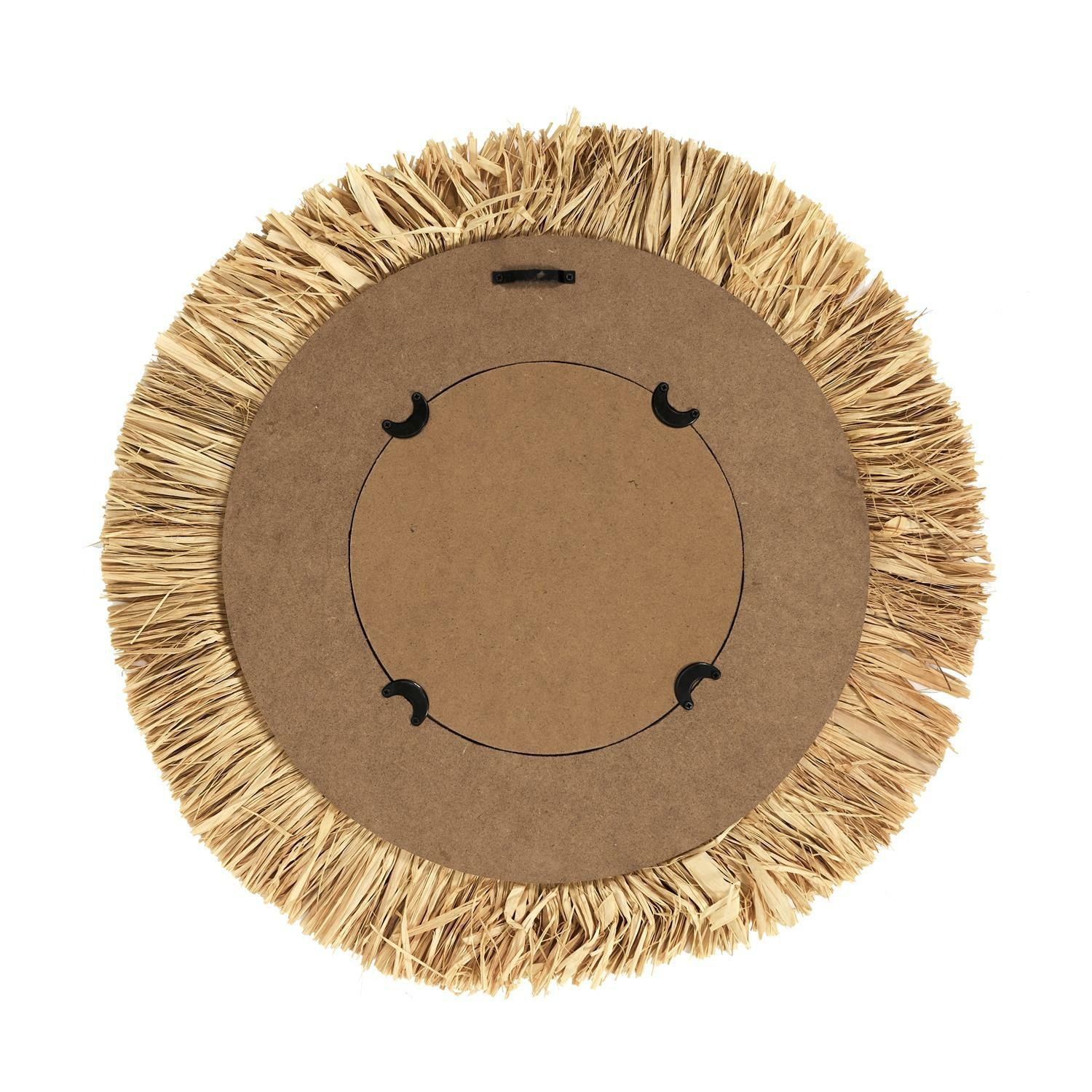 Naturalne lustro w stylu boho dopełni wnętrza o naturalnym wystroju. Lekka rama lustra wykonana została ze słomianych równo przyciętych rurek. Tafla lustra ozdobiona została czarną obwolutą. Lustro posiada uchwyt do zawieszenia go na ścianie. Wymiary opakowania: 60.5 x 61 x 17 cmCechy produktu