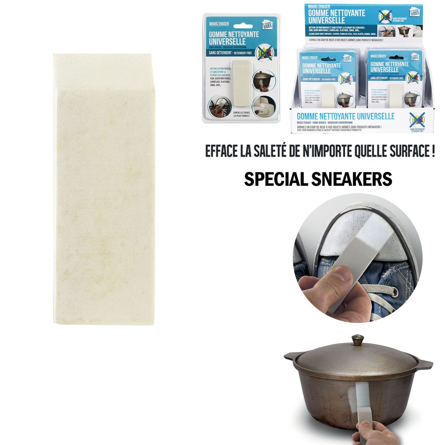 Magiczna gumka to specyfik, który pomoże bez zbędnych detergentów wyczyścić trudne plamy i zarysowania. Jest ona idealna do zmywania osadów, zabrudzeń z długopisu lub kurzu. Różne ślady na ścianach lub innych przedmiotach nie oprą się długo tej uniwersalnej gumce do czyszczenia! Bez użycia detergentów, czyści dokładnie i bez wysiłku większość powierzchni: skórę, stal nierdzewną, płytki, plastik, drewno...Cechy produktu