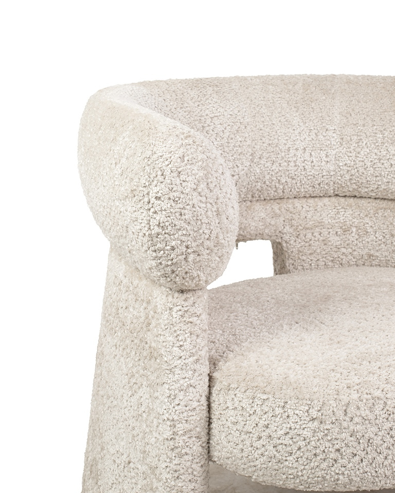 • MaMaison fotel MADAME beżowy. Idealny dla osób ceniących wyrafinowaną prostotę i wygodę. Tapicerowany tkaniną szenilową w ciepłym, beżowym tonie, urzeka subtelną fakturą i miękkością w dotyku. Zaokrąglone oparcie wraz z unikatową podstawą podkreślają eleg