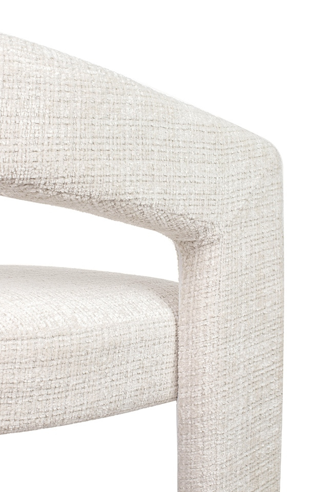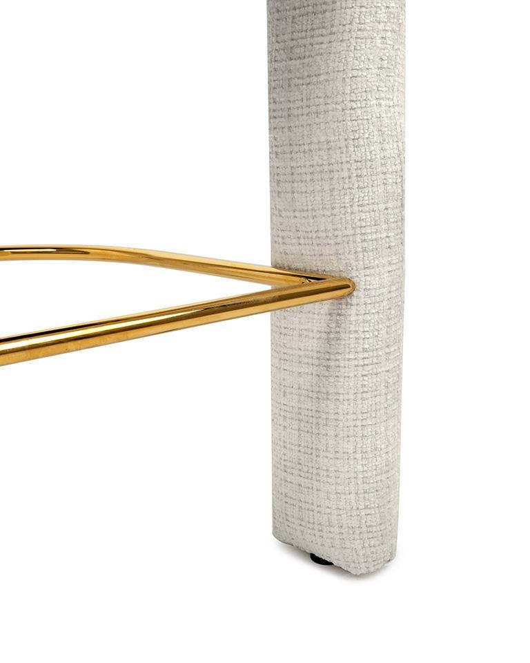 MaMaison krzesło barowe LOGAN białe. Idealne rozwiązanie dla tych, którzy cenią subtelny styl i wygodę. Obite miękką tkaniną Davis Cremona 01 w białym odcieniu, zachwyca delikatnością i przyjemną w dotyku powierzchnią. Oparcie harmonijnie przechodzi w podłokietniki, tworząc jednolitą formę sprzyjającą odpoczynkowi, a podnóżki oferują komfortowe wsparcie dla nóg. Świetnie sprawdzi się przy wyspie kuchennej, w przestronnej jadalni oraz w stylowym salonie. Doskonale komponuje się zarówno z nowoczesnymi, jak i glamour wnętrzami, podkreślając ich styl i wyrafinowanie. Uzupełnieniem kolekcji jest krzesło z tej samej serii, które w pełni komponuje się z pozostałymi elementami. Wymiary: wys. 94 cm / szer. 55 cm / gł. 51 cm Wysokość do krawędzi siedziska: 67 cm Wys. do podłokietników: 89 cm Siedzisko: szer. 46 cm / gł. 45 cm Oparcie: wys. 27 cm / szer. 50 cm Rozstaw nóg: szer. 55 cm / gł. 51 cm Waga brutto: 13,4 kg Wymiary opakowania: 108 cm / 60 cm / 66,5 cm.Cechy produktu