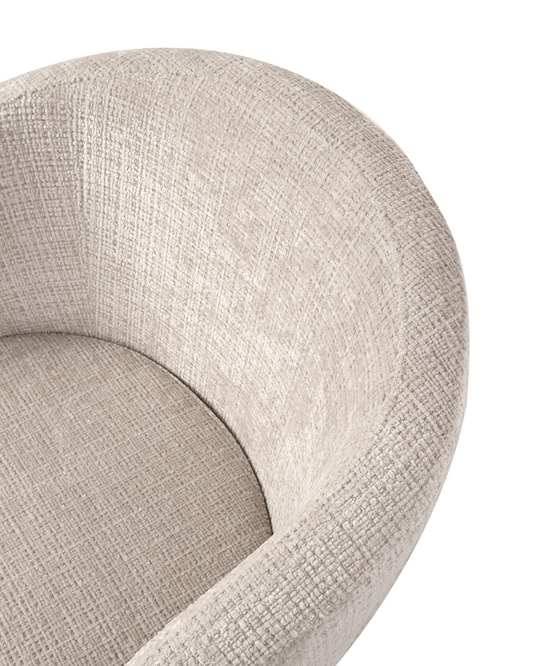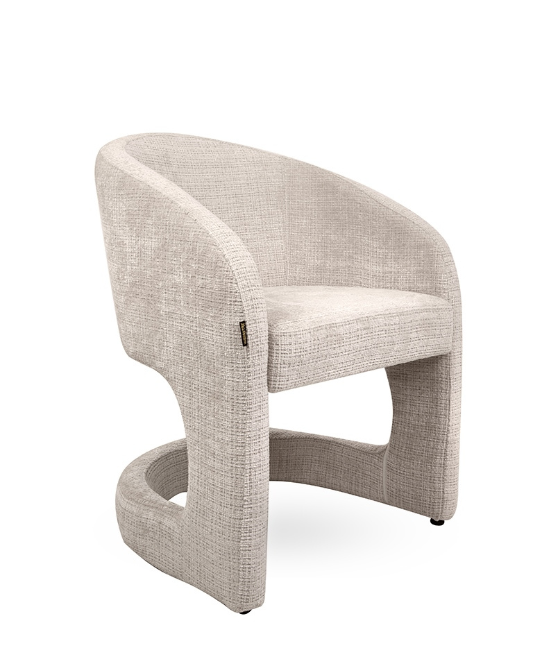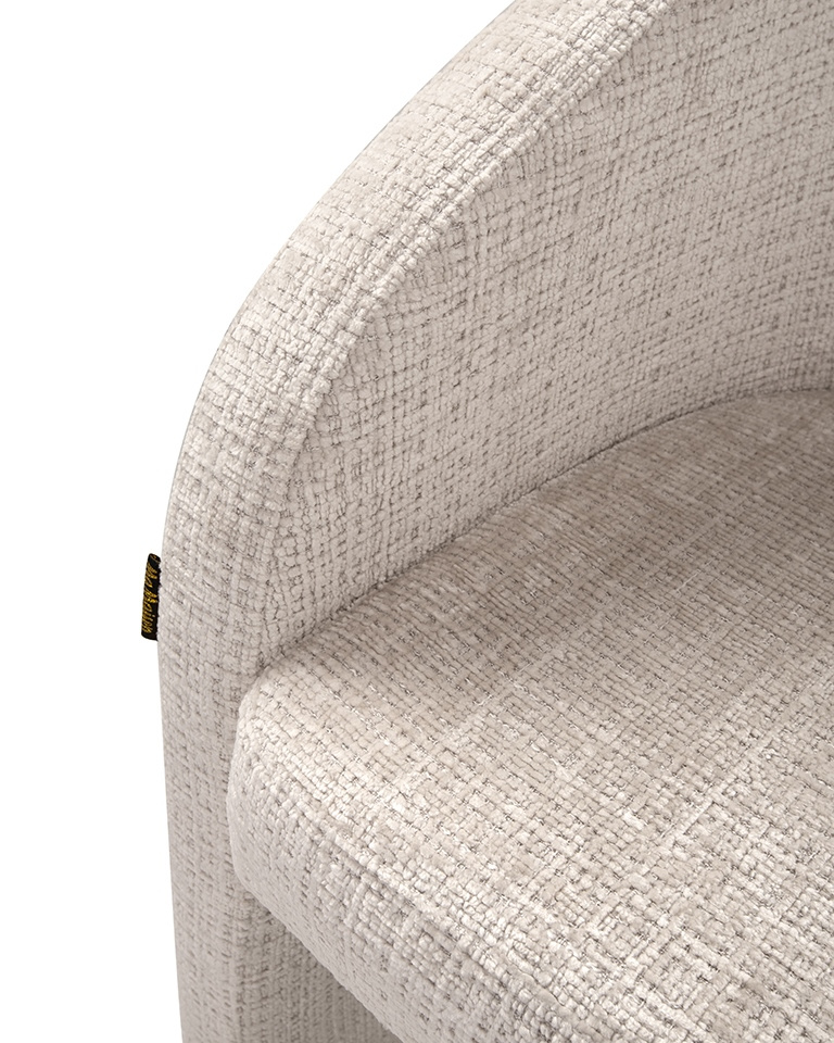 • MaMaison krzesło SHELLY beżowe. Unikalny styl połączony z doskonałym komfortem. Krzesło tapicerowano przyjemną w dotyku tkaniną Davis Cremona 02 w beżowym odcieniu, który dodaje wnętrzu przytulności. Zaokrąglona sylwetka wzmacnia rzeźbiarski wyraz całości