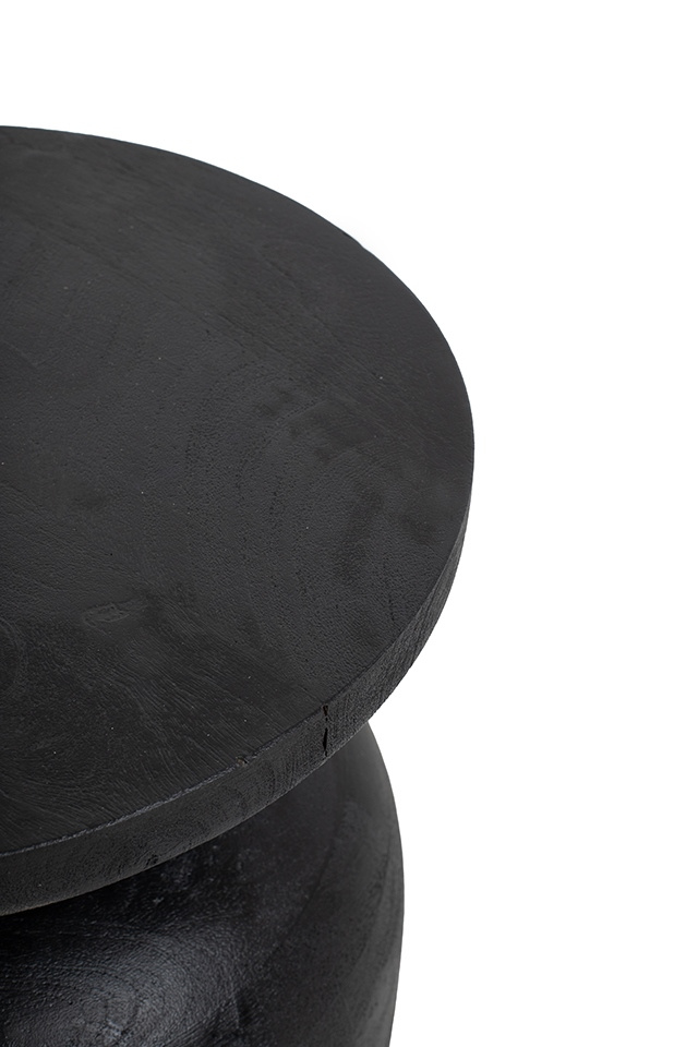 - MaMaison stolik BISATO czarny. Wyrafinowane połączenie rzeźbiarskiej formy z naturalnym charakterem drewna mango. Wyjątkowy kształt, przypominający elegancką wazę, czyni stolik nie tylko funkcjonalnym, ale i artystycznym akcentem wnętrza. Matowe wykończen