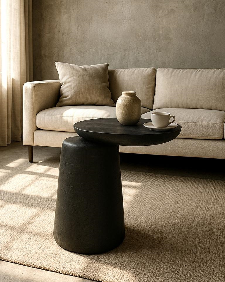 MaMaison stolik ELIAS czarny / drewno. Połączenie nowoczesnej formy z elegancją naturalnego drewna mango. Oryginalna, asymetryczna konstrukcja nadaje rzeźbiarski charakter i sprawia, że stolik staje się wyjątkową dekoracją każdego wnętrza. Matowa czerń podkreśla minimalistyczny styl, jednocześnie dodając głębi i wyrafinowania. Idealnie sprawdzi się jako stolik pomocniczy obok sofy, fotela czy łóżka. Elias dostępny jest również w efektownej, złotej wersji, która wnosi do przestrzeni nutę luksusu. To doskonały wybór dla miłośników designerskich, funkcjonalnych detali. Wymiary: wys. 46,5 cm / szer. 41 cm / gł. 35 cm Waga brutto: 17 kg.Cechy produktu