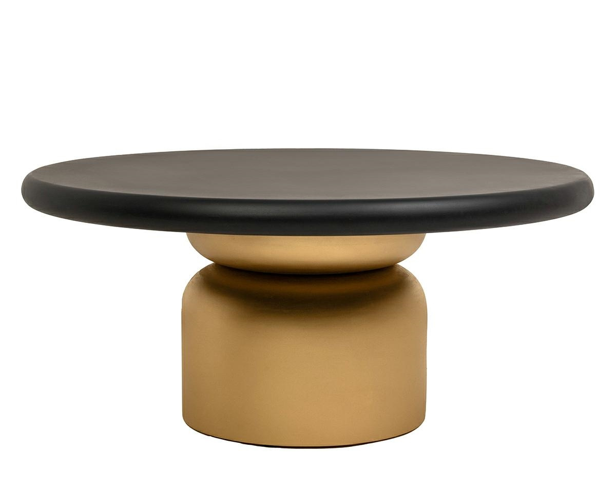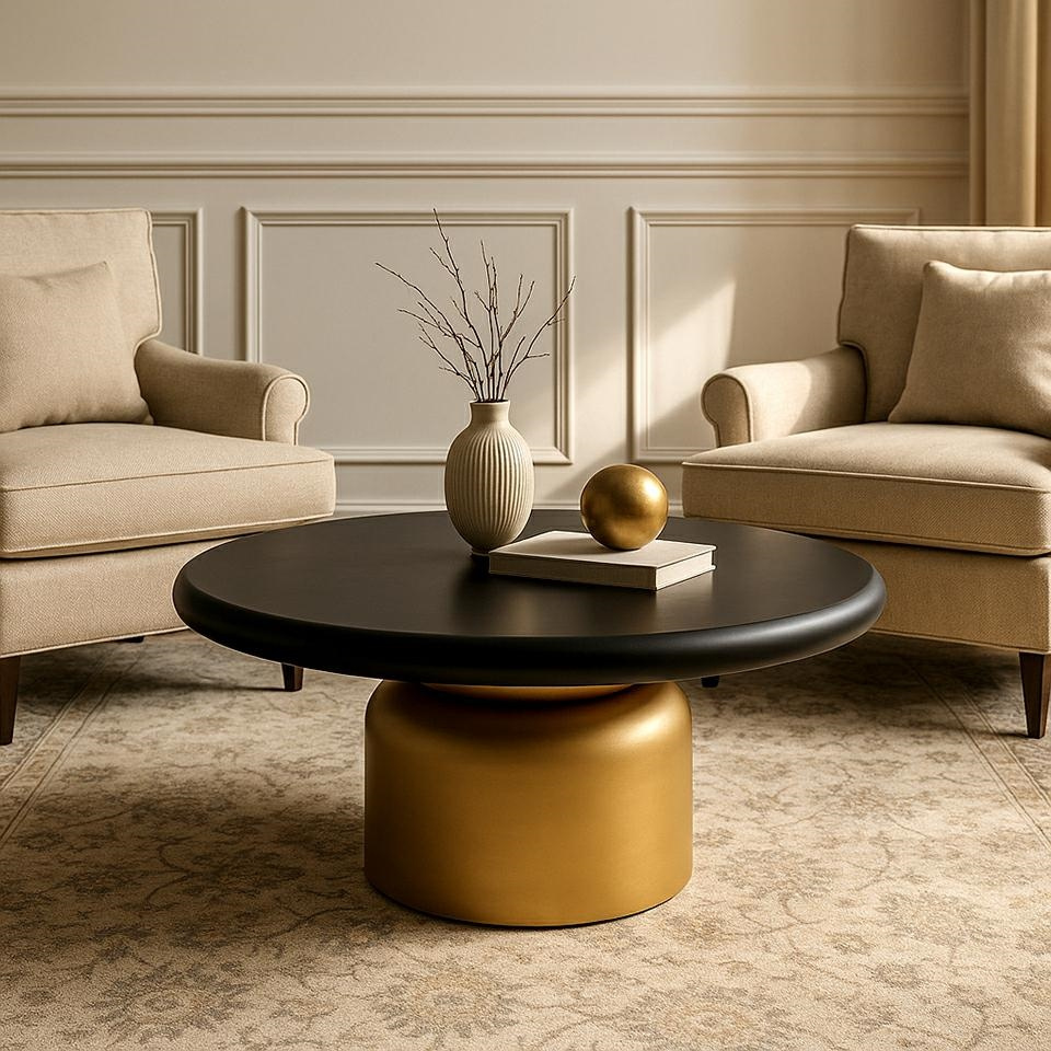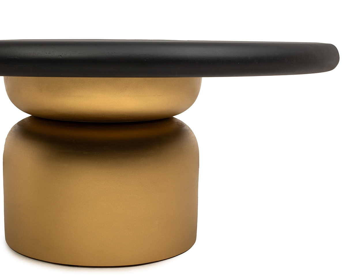 MaMaison stolik kawowy LEONARDO złoty / czarny. Stolik Leonardo łączy nowoczesny design z wyjątkową formą, tworząc elegancki akcent w każdym wnętrzu. Wykonany z połączenia drewna mango i płyty MDF to doskonała harmonia naturalnego ciepła i nowoczesnej funkcjonalności. Podstawa stolika w złotym odcieniu emanuje elegancją, luksusem i subtelną ekstrawagancją, wprowadzając do wnętrza ponadczasowy blask, ciemny blat z kolei dodaje przestrzeni elegancji, spokoju i głębi, razem tworzą idealne połączenie, które harmonijnie łączy luksus z wyważoną formą. Stolik kawowy doskonale komponuje się ze stolikiem z tej samej serii, tworząc spójną i elegancką całość w Twoim wnętrzu. Leonardo wprowadzi luksusowy akcent do każdego wnętrza. Wymiary: wys. 41 cm / szer. 91 cm / gł. 91 cm Waga brutto: 30 kg.Cechy produktu