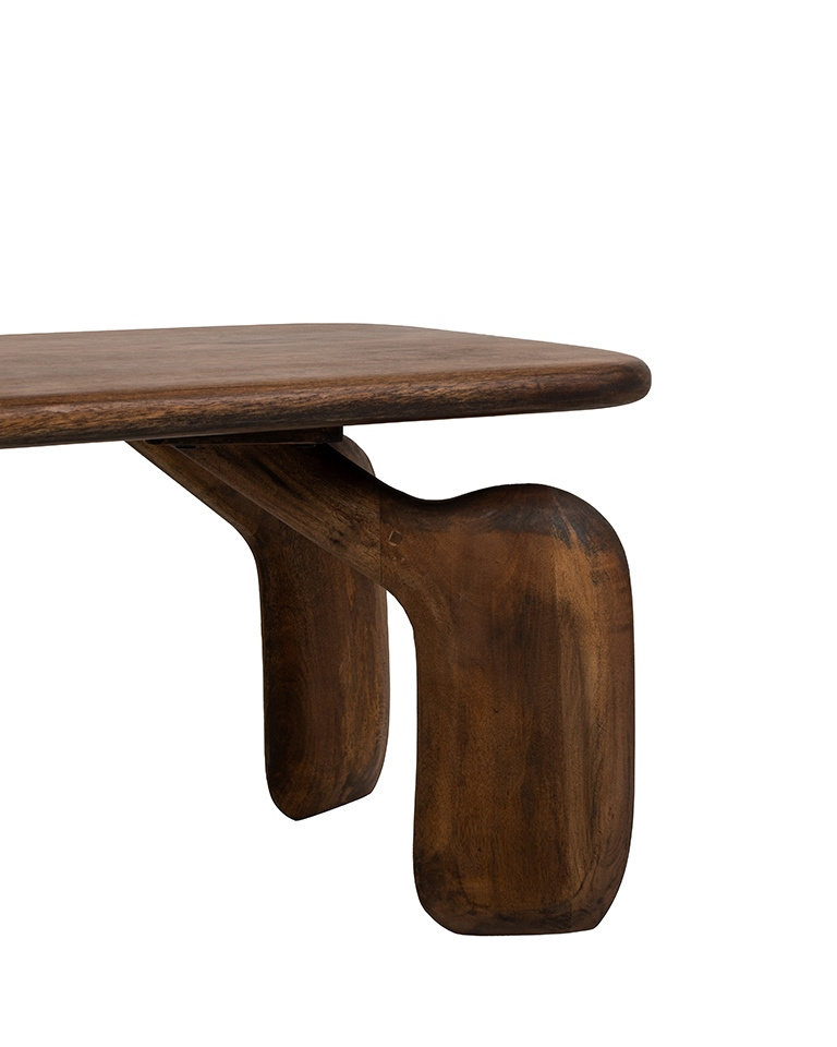 MaMaison stolik kawowy ORIZON brązowy / drewno. Nowoczesna forma, ponadczasowa elegancja i niezrównany komfort. Wykonany z wysokiej jakości drewna mango, zachwyca niepowtarzalnym usłojeniem oraz ciepłą brązową kolorystyką. Orizon to stylowa kolekcja do każdego nowoczesnego wnętrza, która będzie przyciągała wzrok formą oraz oryginalną, geometryczną podstawą. Zapraszamy do zapoznania się z całą serią – meblami, które łączą nowoczesny design z wyjątkową funkcjonalnością. Wymiary: wys. 49 cm / szer. 120 cm / gł. 60 cm Waga brutto: 26,1 kgCechy produktu