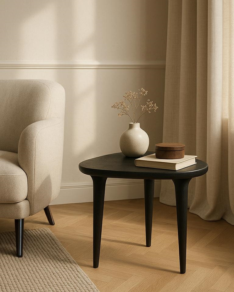 - MaMaison stolik LAMINAR czarny / drewno. Nowatorski design i elegancja – idealne połączenie estetyki z funkcjonalnością. Stolik wykonany z drewna mango zachwyca naturalnym wyglądem, trwałością i unikalnym usłojeniem, które nadaje mu niepowtarzalny charakt