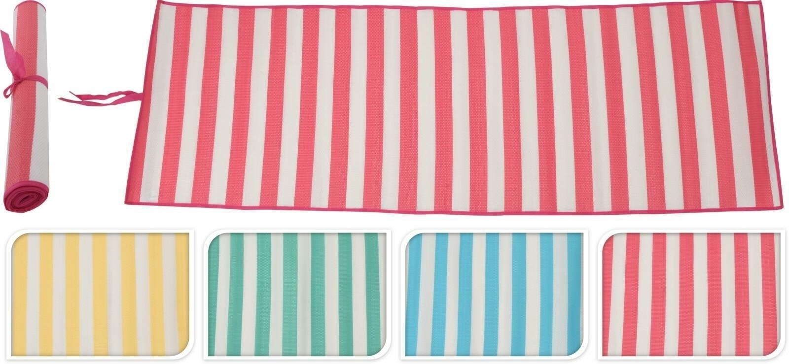 Mata plażowa wykonana z polipropylenu, który jest bardzo wytrzymały i odporny na warunki atmosferyczne. Mata sprawdzi się podczas opalania na piasczystej plaży. Odpoczynek na takiej macie chroni nas przed przyklejaniem się piasku do naszej nawilżonej kremem do opalania skóry. Mate można łatwo zwinąć.Cechy produktu
