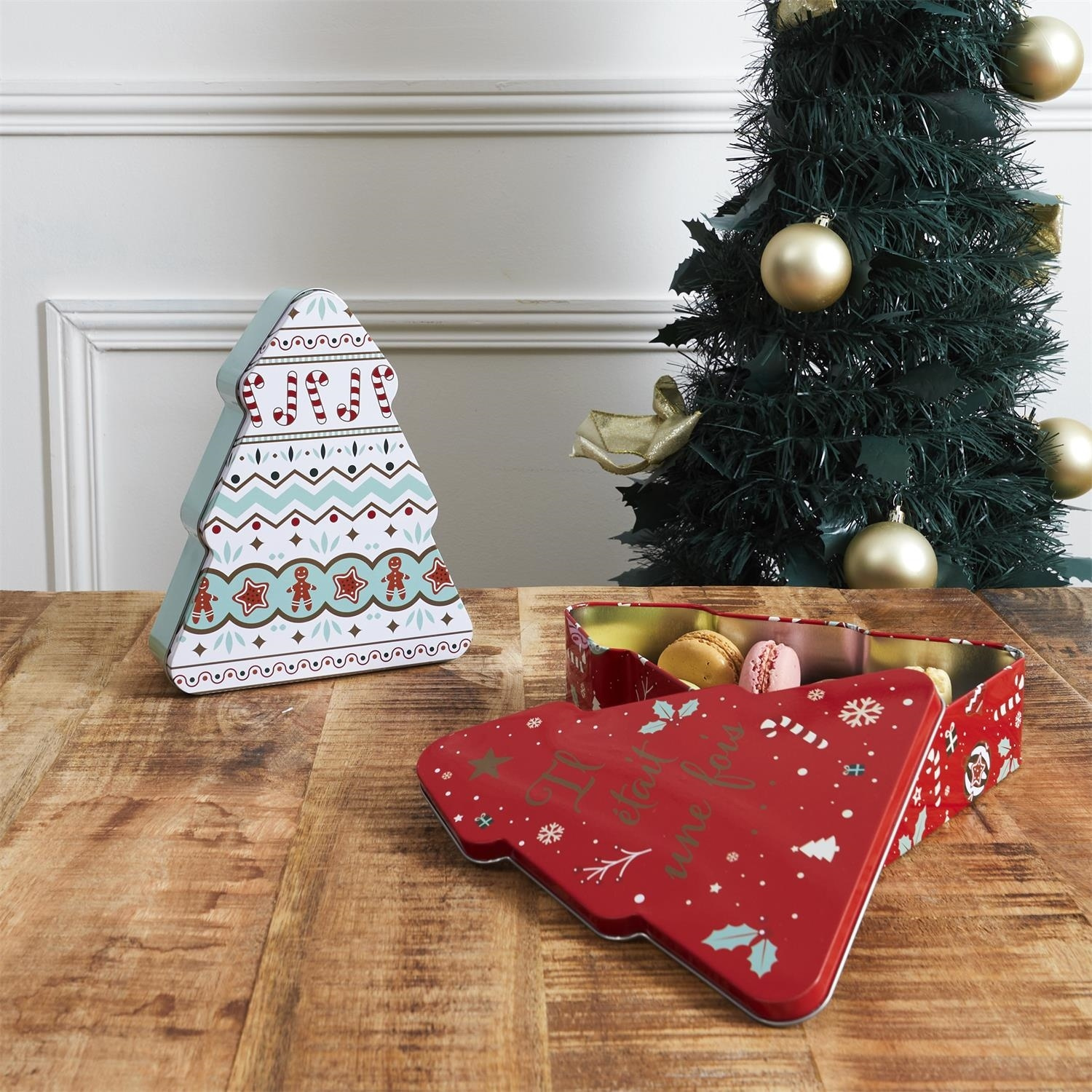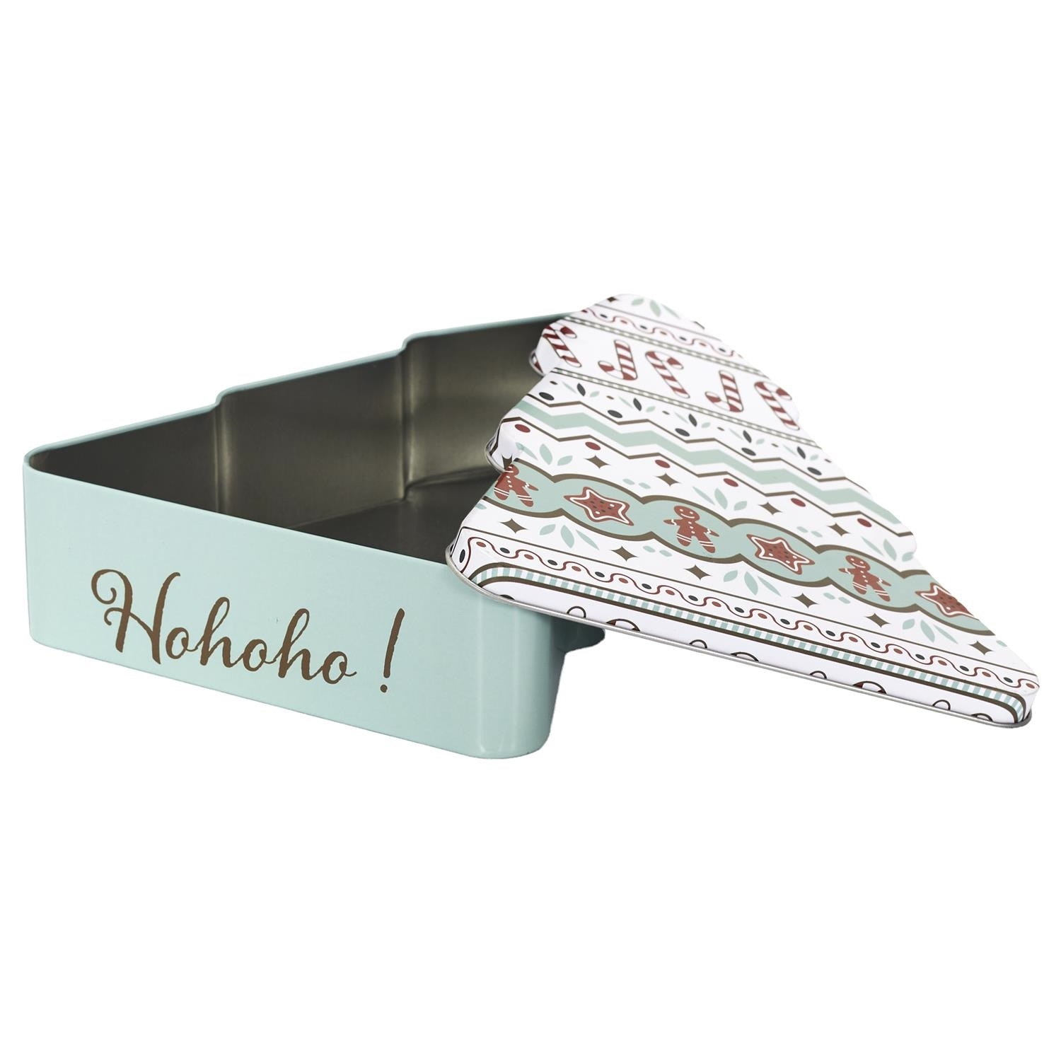 Metalowe pudełko w kształcie choinki to idealny pojemnik na świąteczne ciasteczka i pierniczki. Pojemnik wykonany z metalu, ozdobione świątecznymi wzorami.Cechy produktu